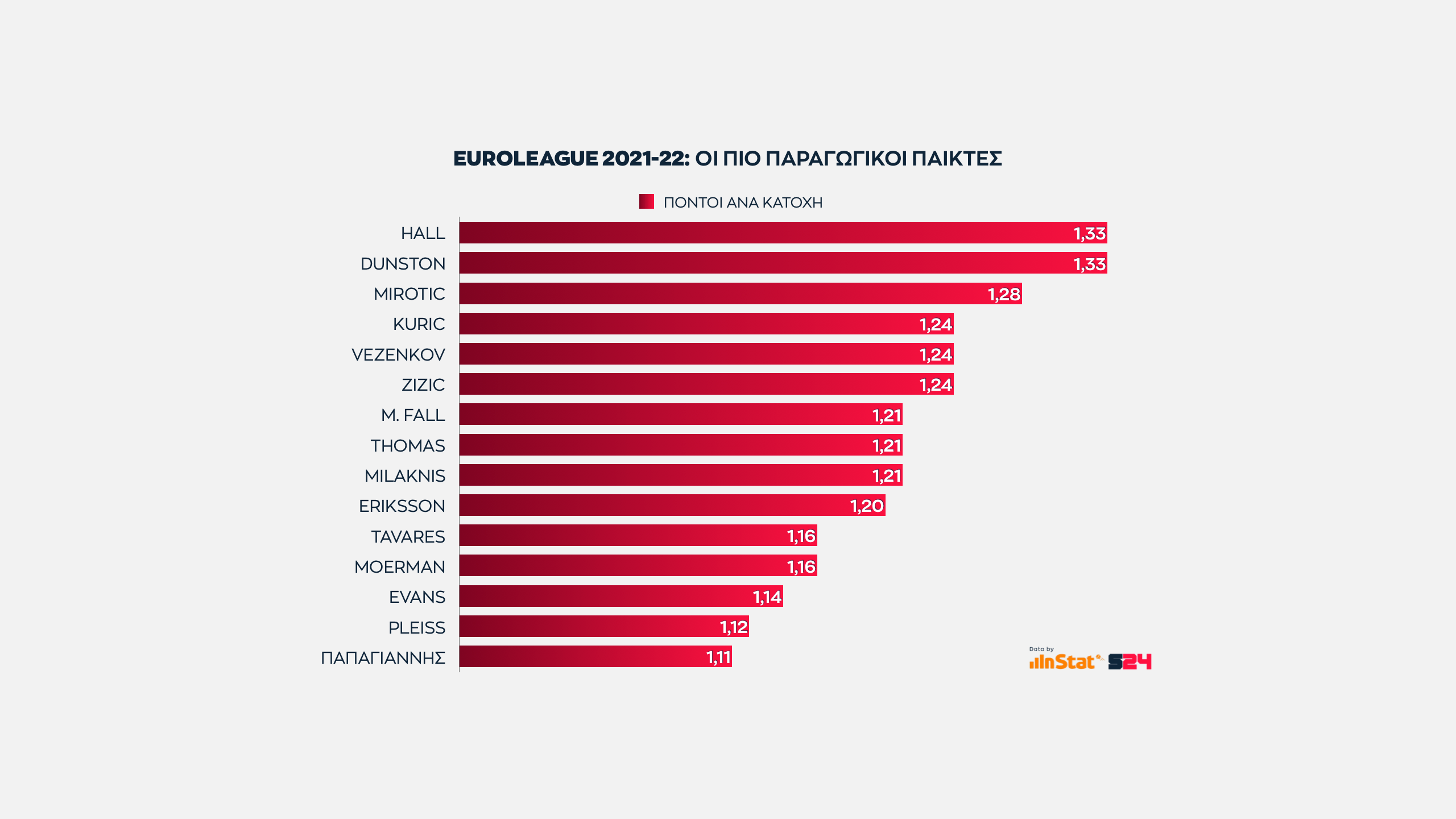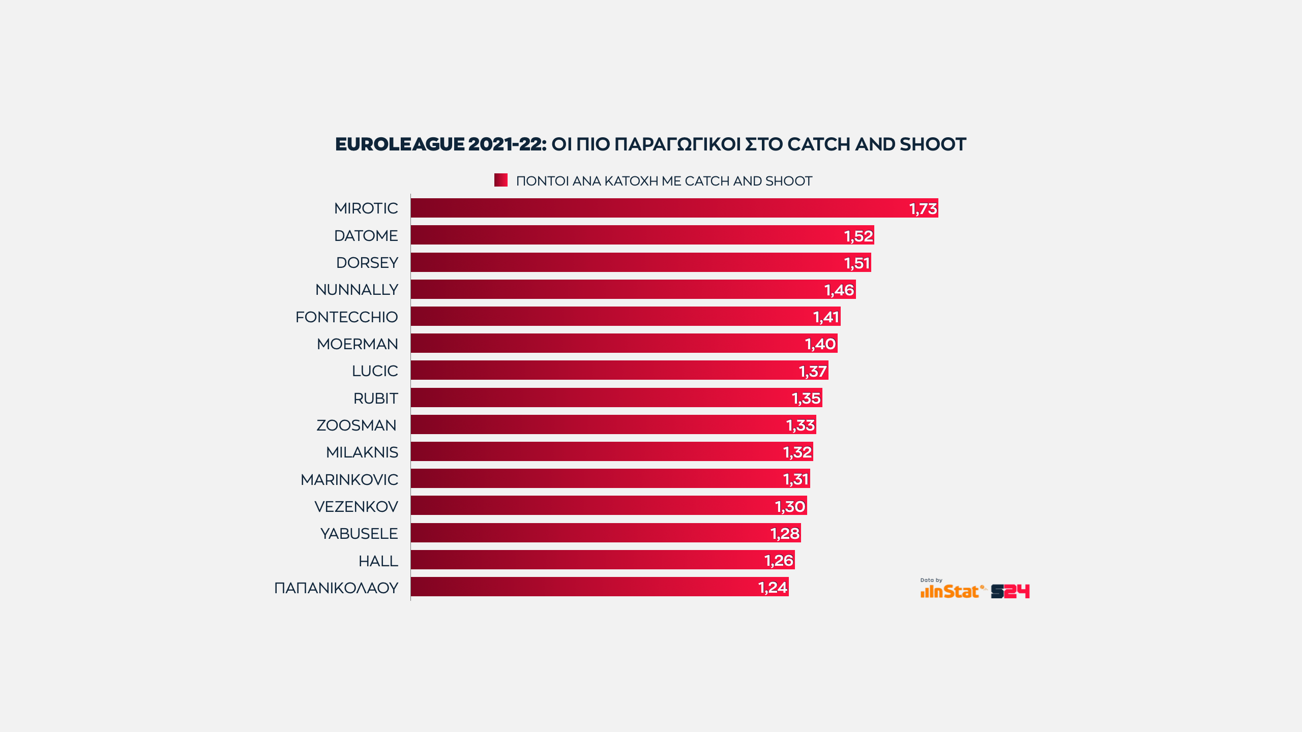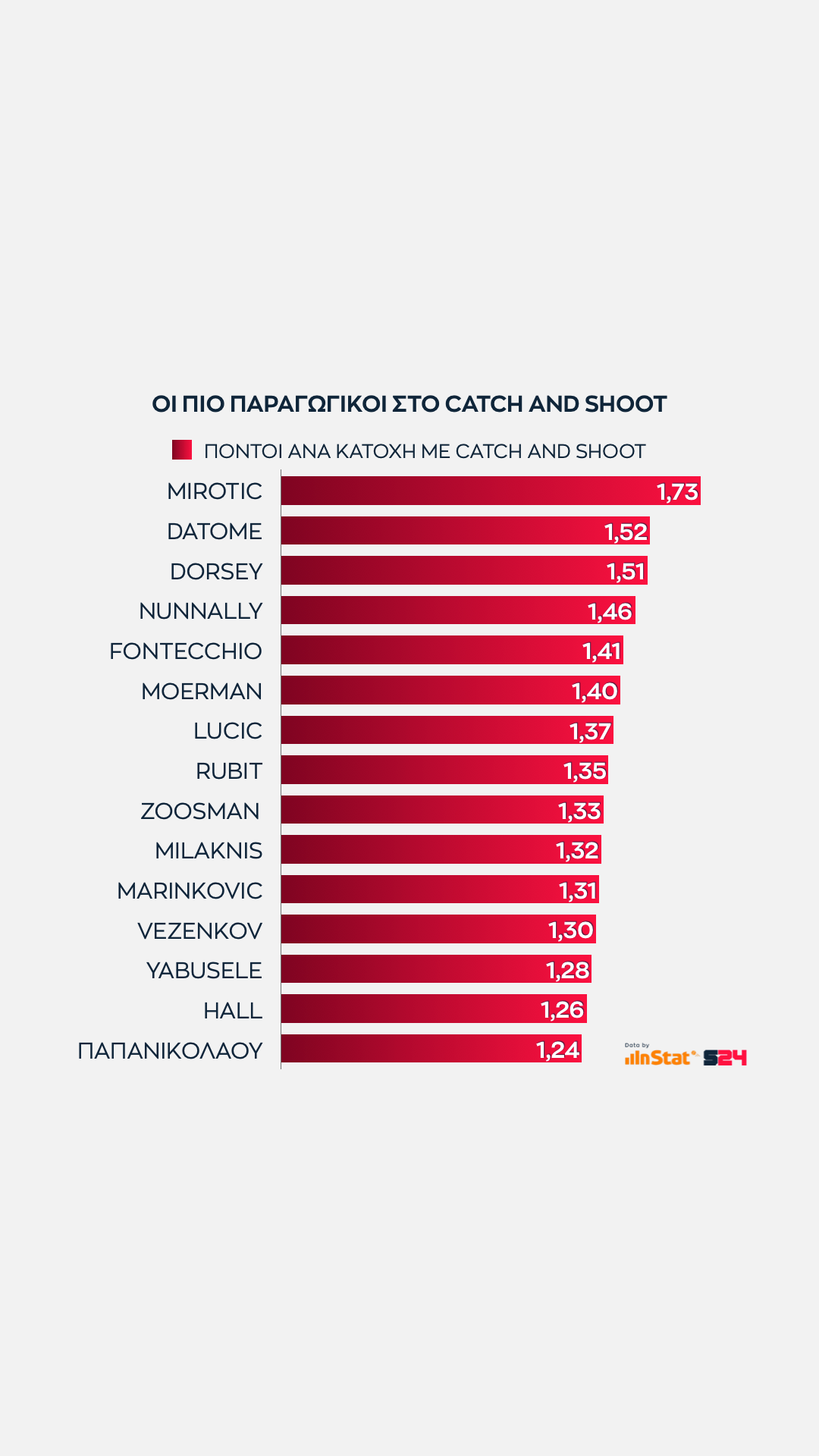 Το γράφημα παρουσιάζει όχι μόνο αυτούς που σουτάρουν με συνέπεια, αλλά όσους προσφέρουν τους περισσότερους πόντους ανά κατοχή από καταστάσεις άμεσης εκτέλεσης.
