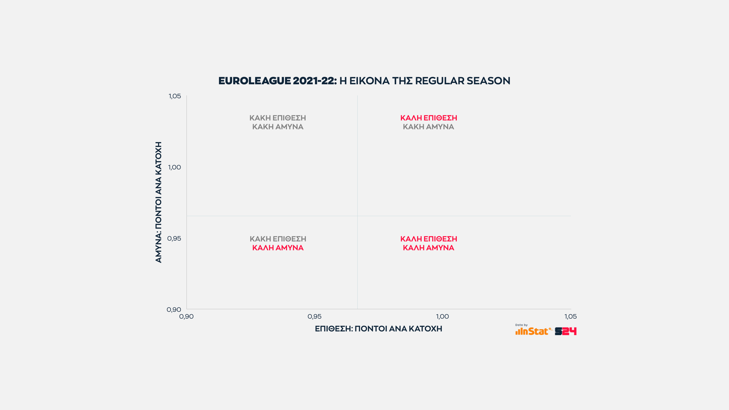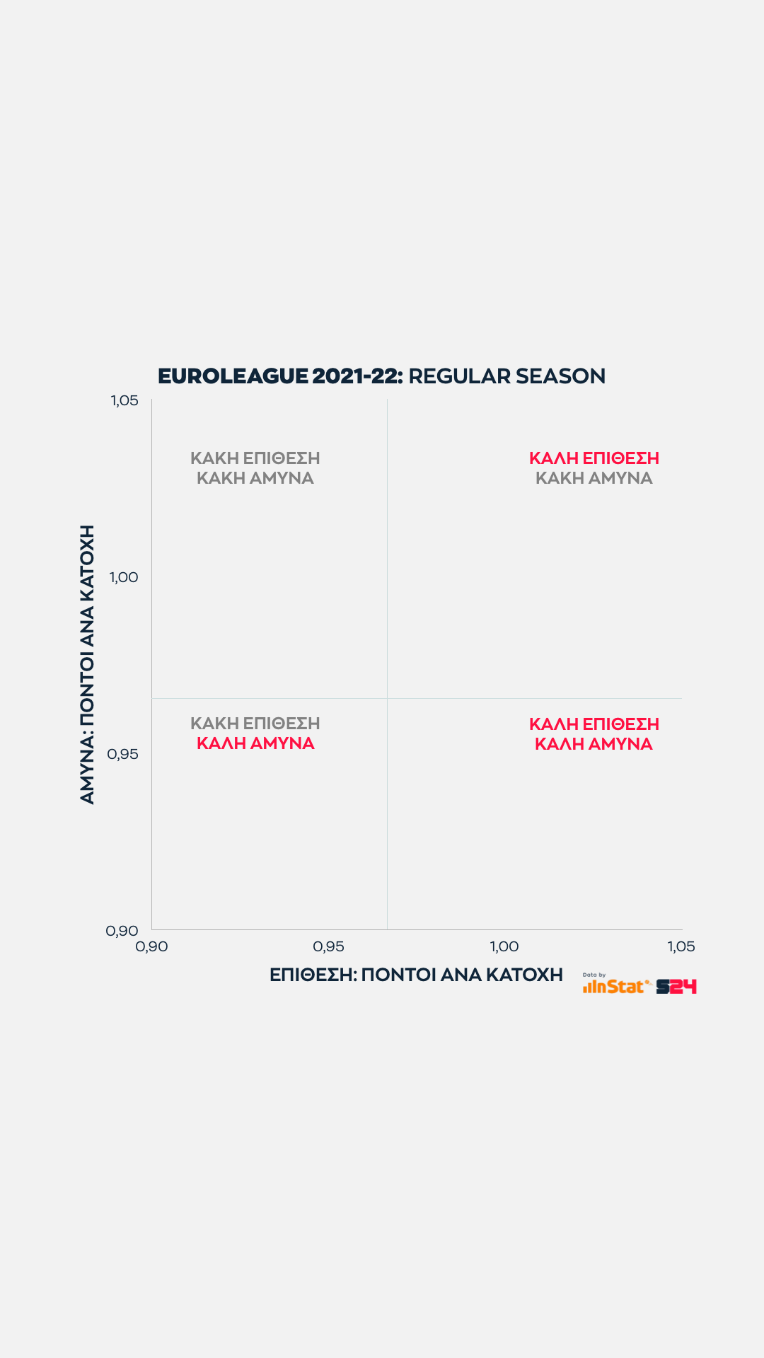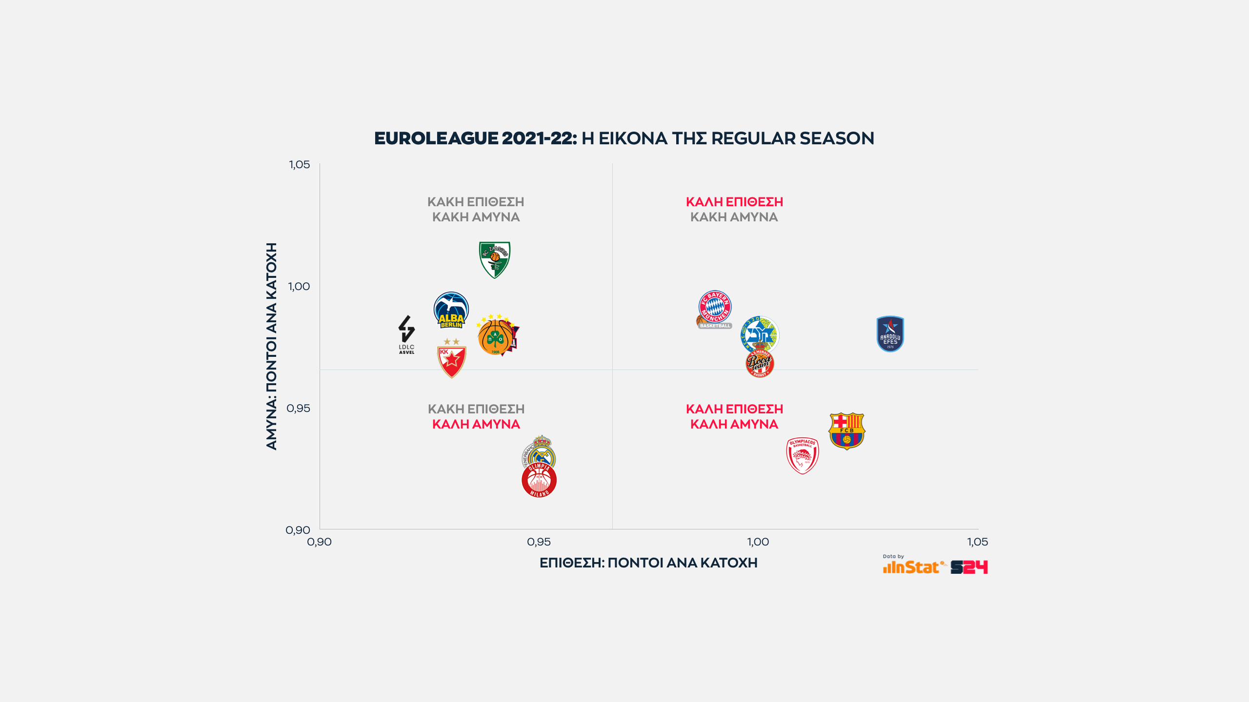 Όσο πιο δεξιά και χαμηλά κινείται μία ομάδα τόσο καλύτερη ισορροπία εμφανίζει. Δεξιά, γιατί παράγει περισσότερους πόντους και χαμηλά γιατί δέχεται λιγότερους.