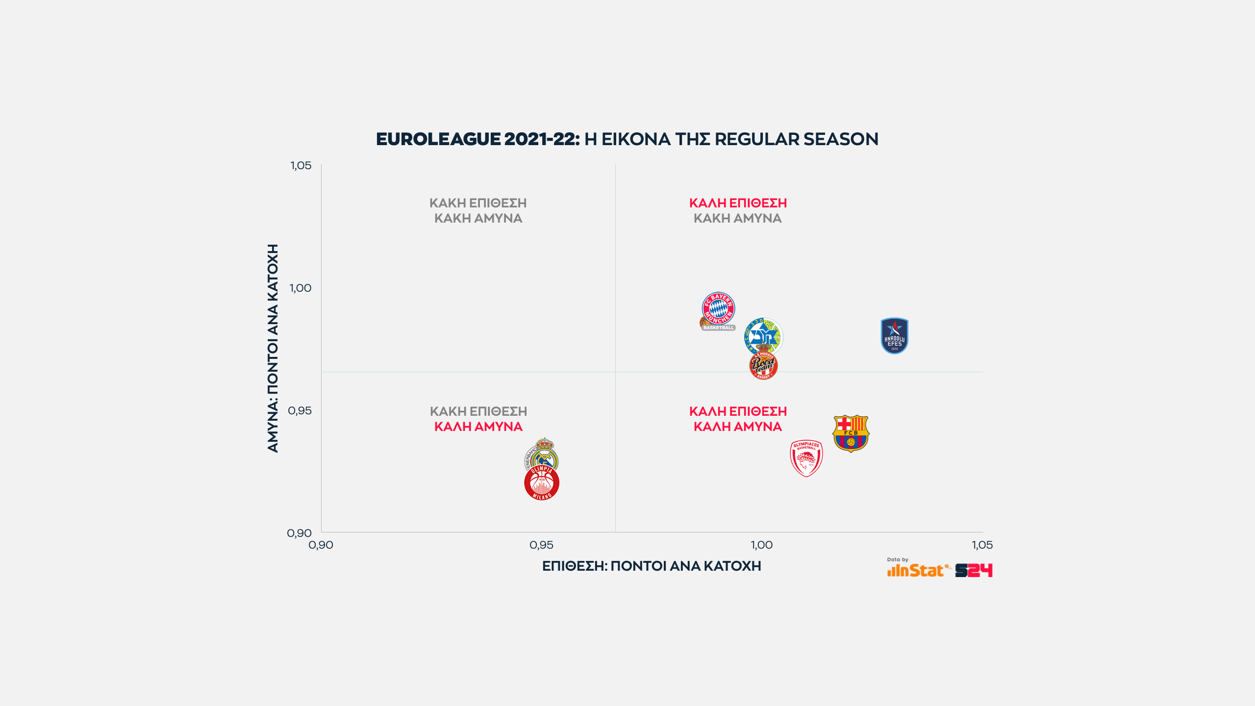 Η ανάλυση έχει να κάνει με τον τρόπο που δούλευαν οι ομάδες στη διάρκεια της σεζόν. Με ποιον τρόπο απειλούσαν, πώς έβρισκαν σκορ, πόσο αποτελεσματικές ήταν στην άμυνα, ποιοι ήταν οι παίκτες τους που διακρίθηκαν και σε ποιες κατηγορίες ήταν περισσότερο αποδοτικοί στις δύο πλευρές του παρκέ.