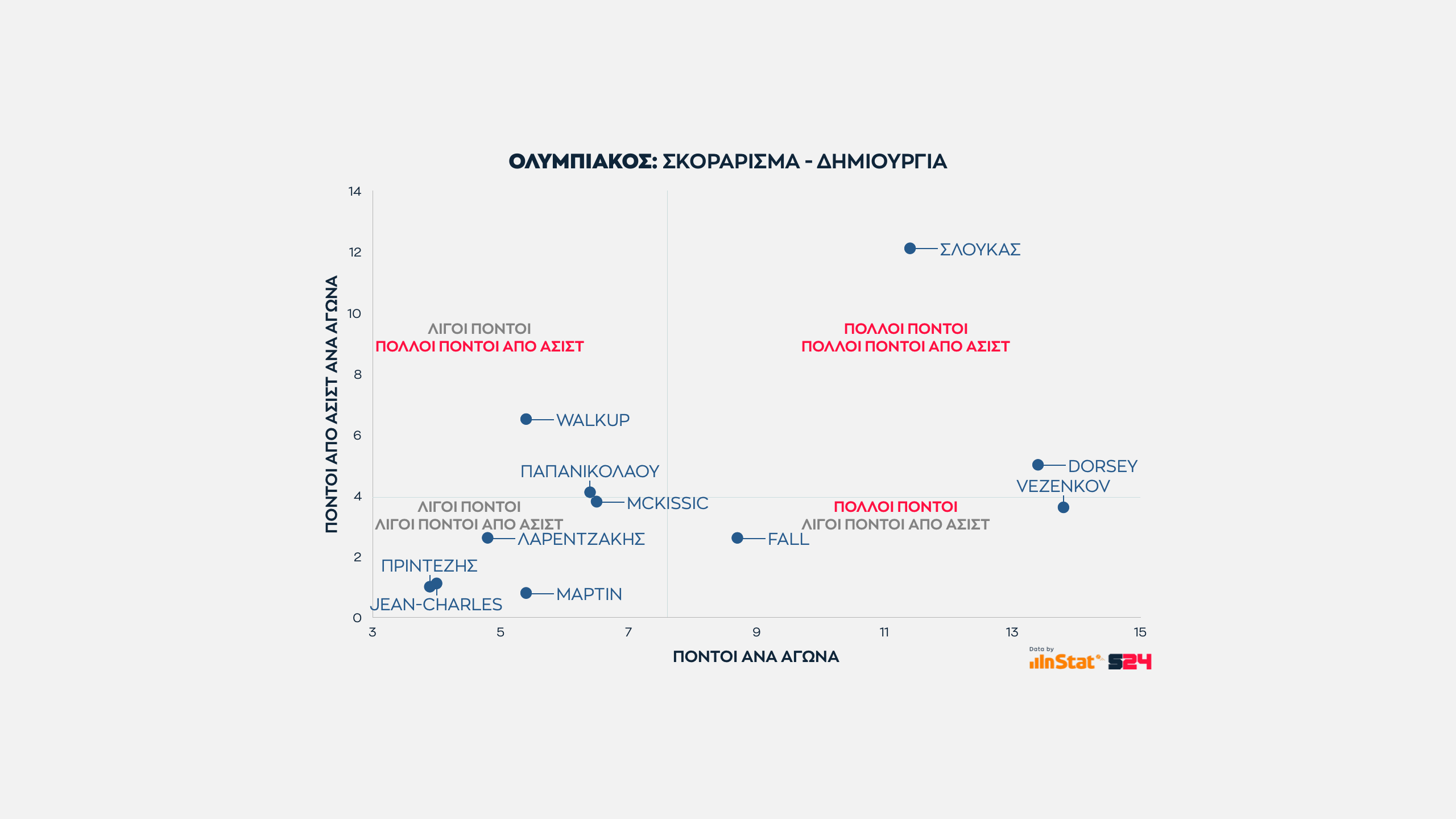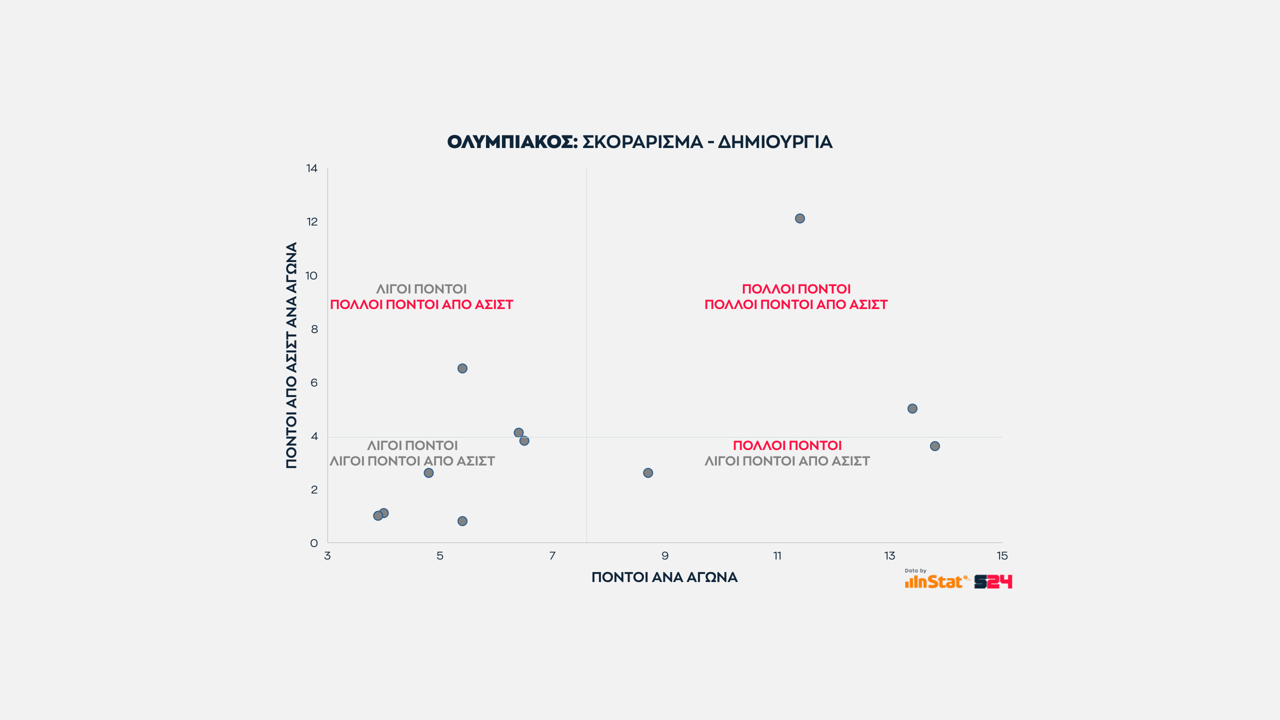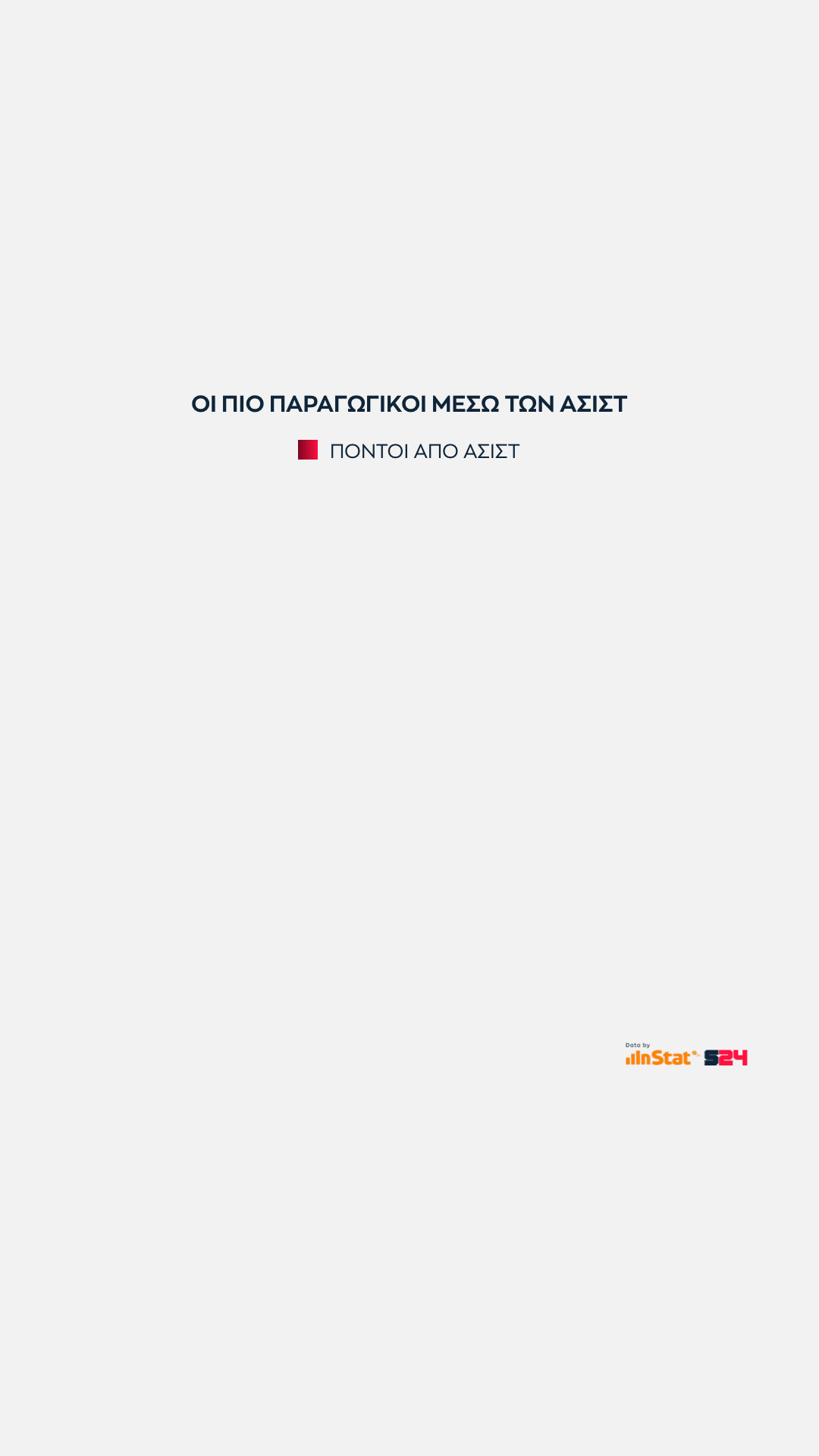 Στο κλείσιμο του Ολυμπιακού, περνάμε στην αναλογία ατομικών πόντων με τους έξτρα πόντους που δίνει κάθε παίκτης με τις ασίστ του.