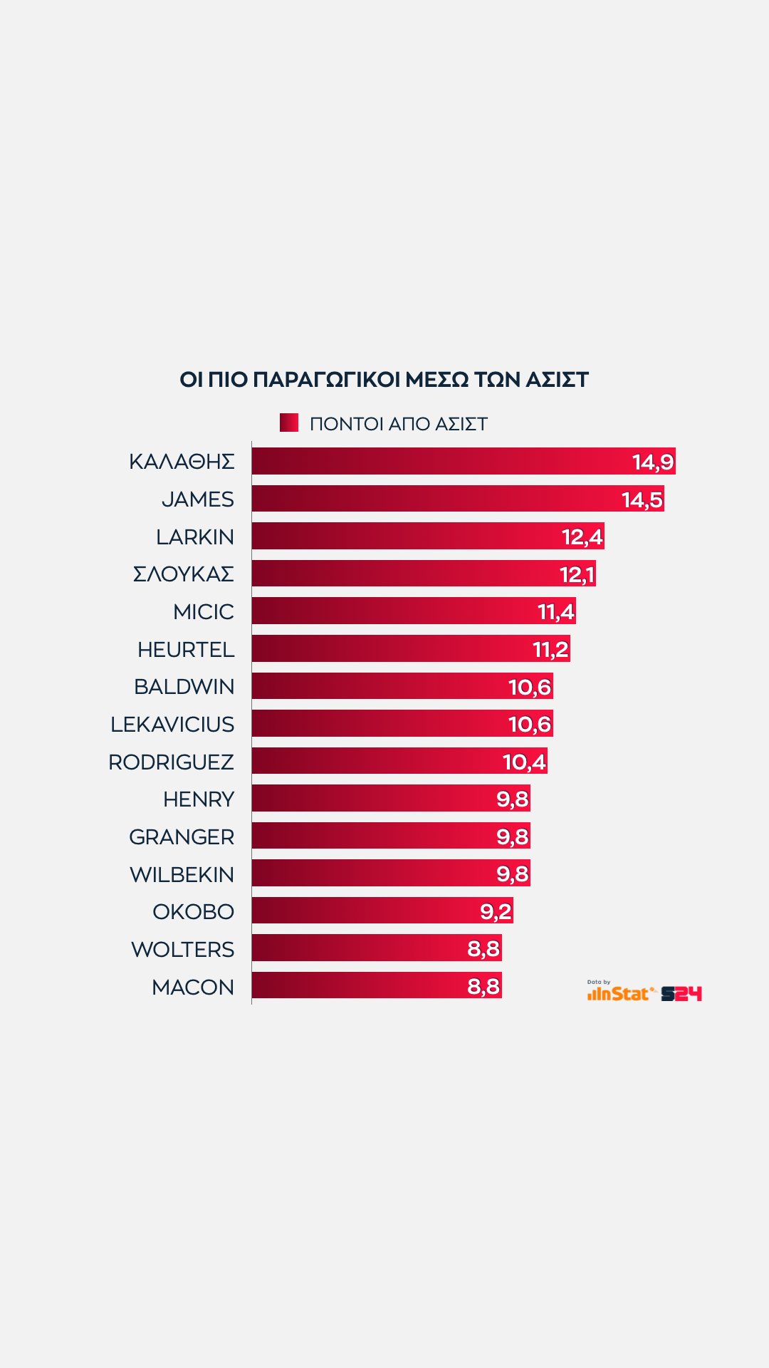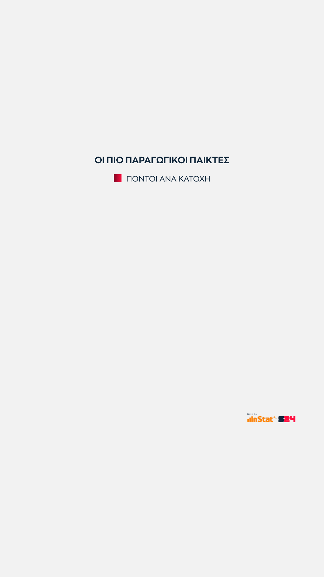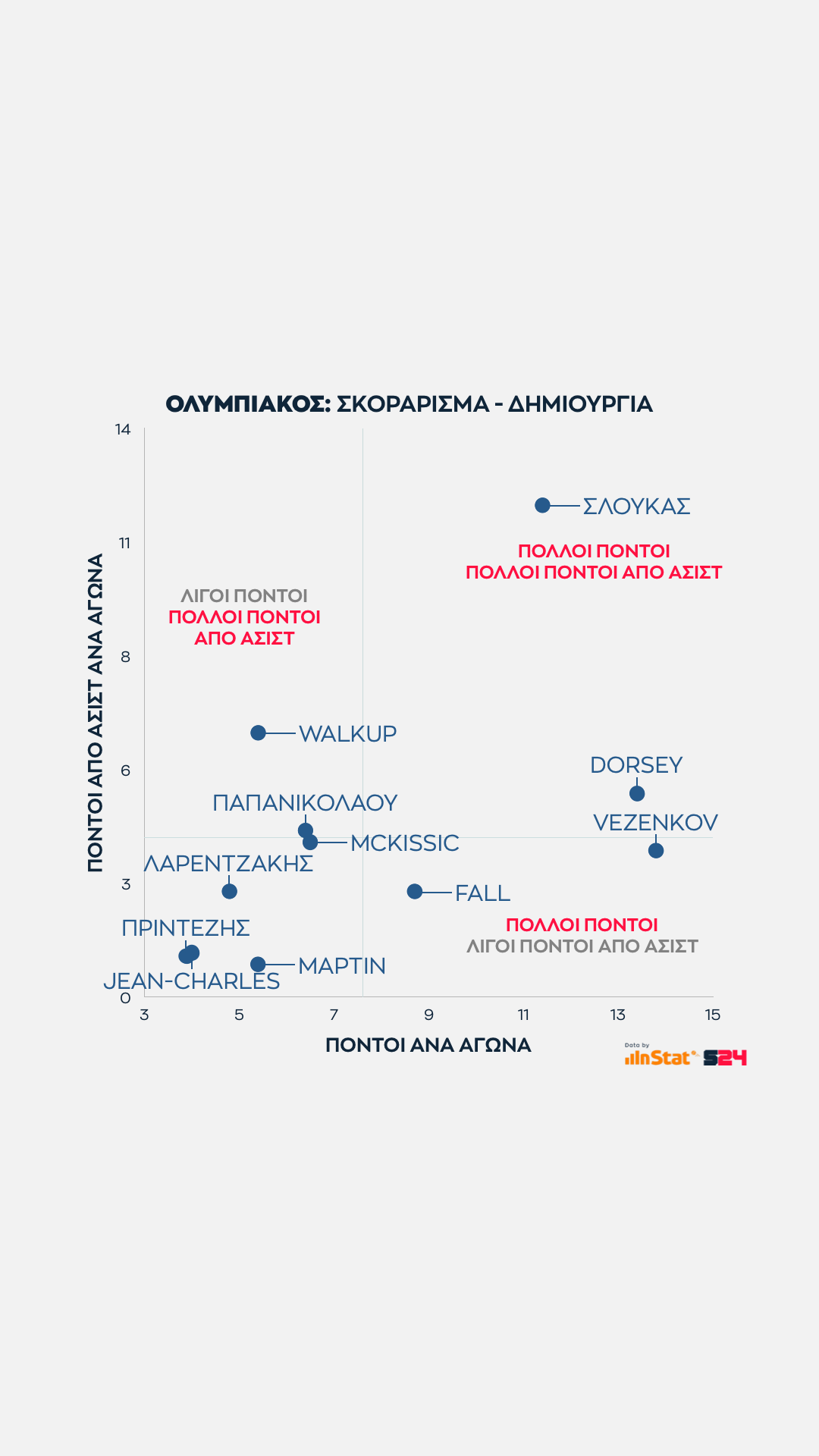 Στο κλείσιμο του Ολυμπιακού, περνάμε στην αναλογία ατομικών πόντων με τους έξτρα πόντους που δίνει κάθε παίκτης με τις ασίστ του.