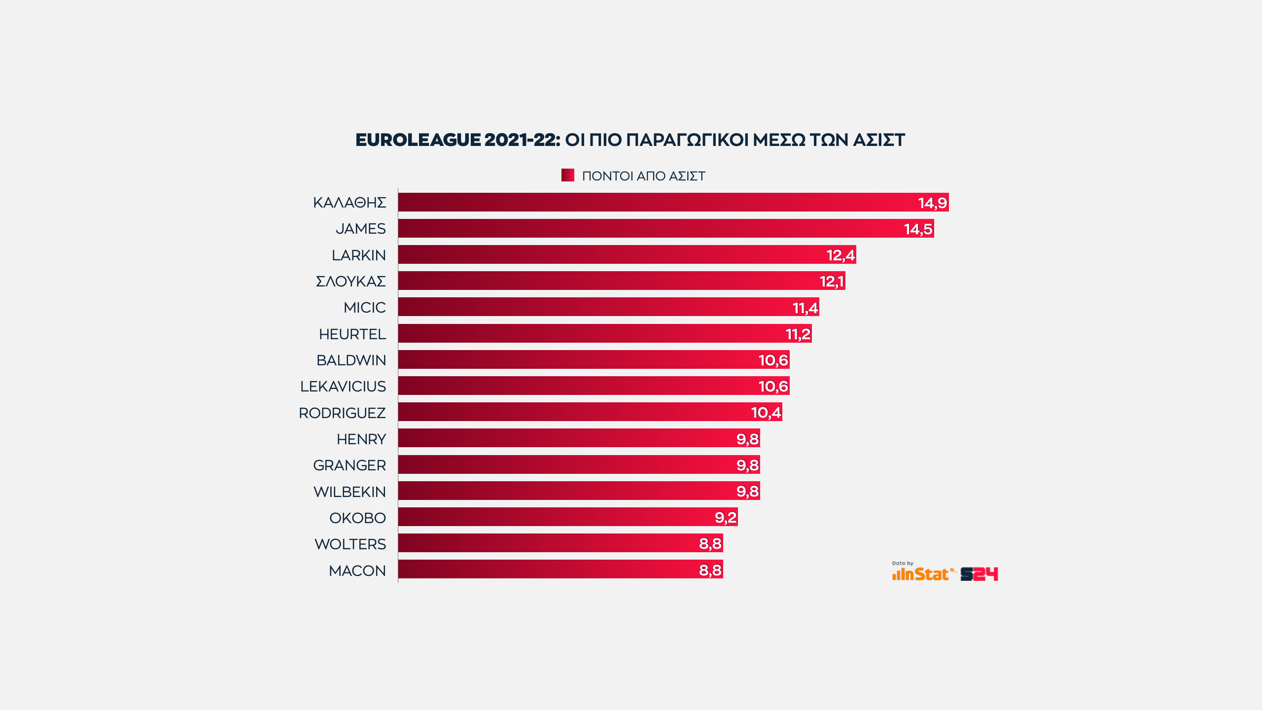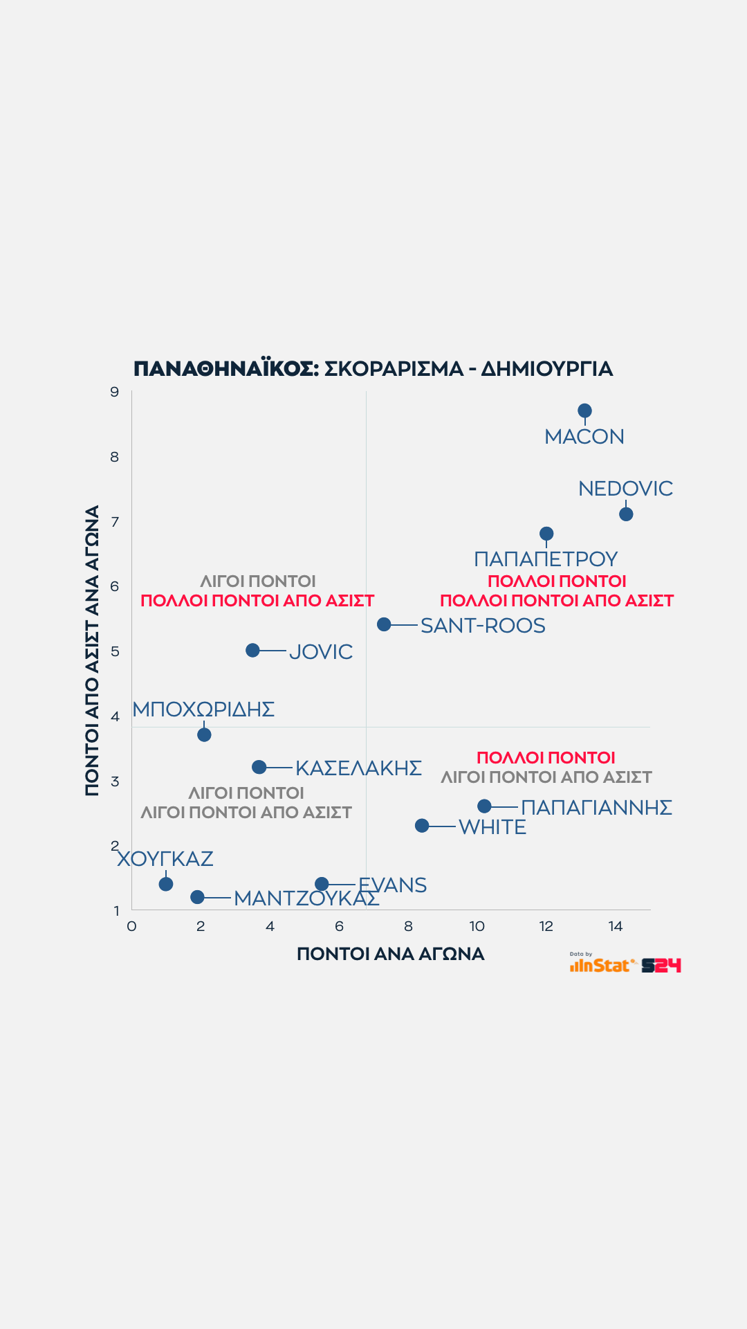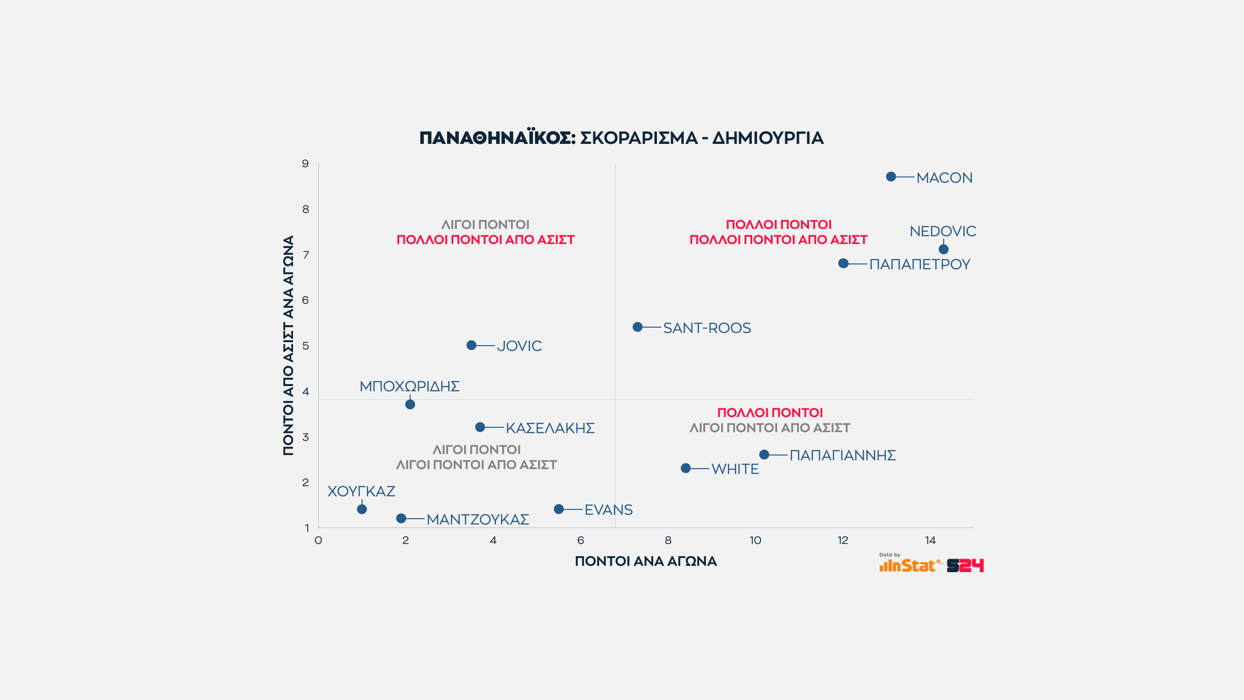 Κλείνοντας βλέπουμε την αναλογία πόντων προς του πόντους που χάριζε κάθε παίκτης μέσα από ασίστ του.