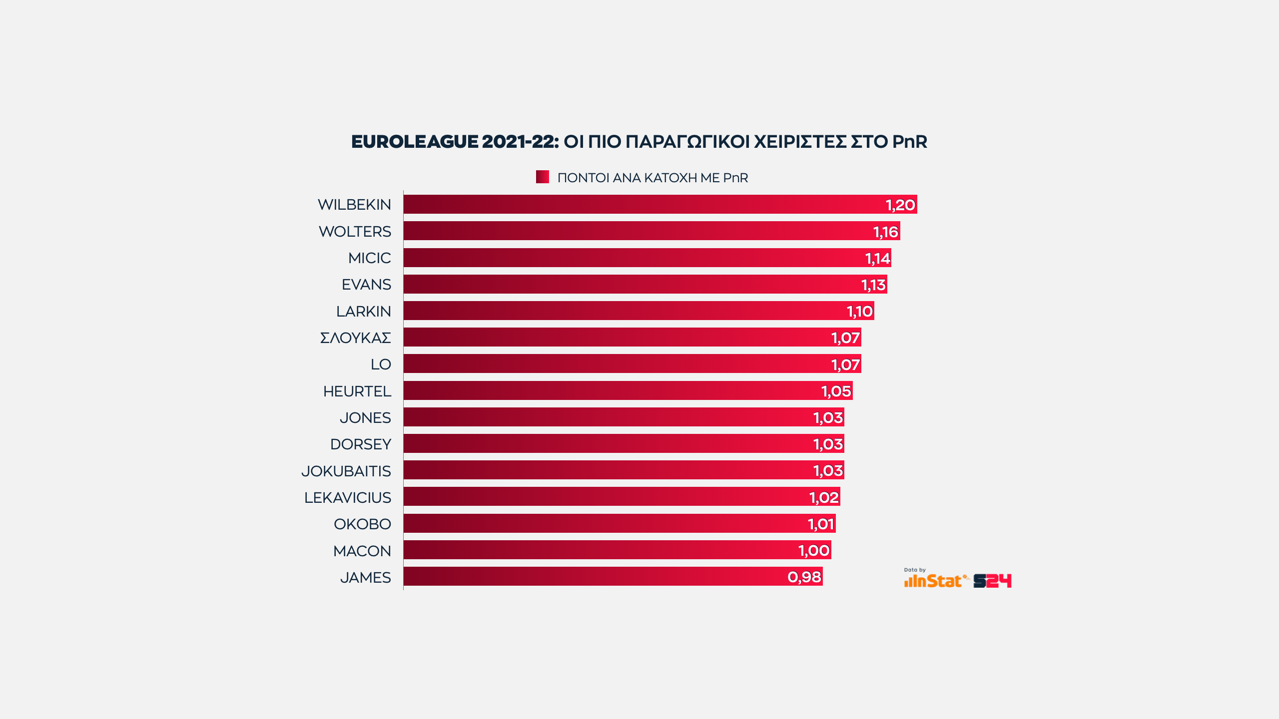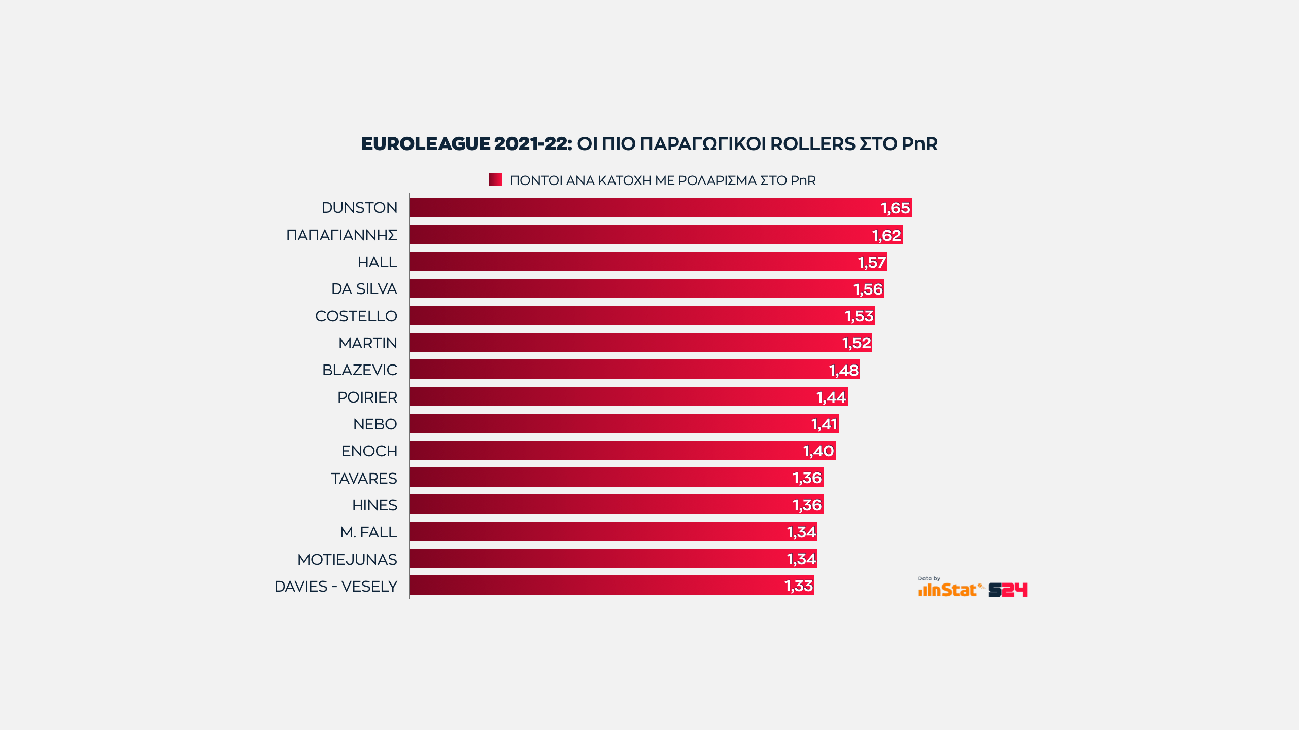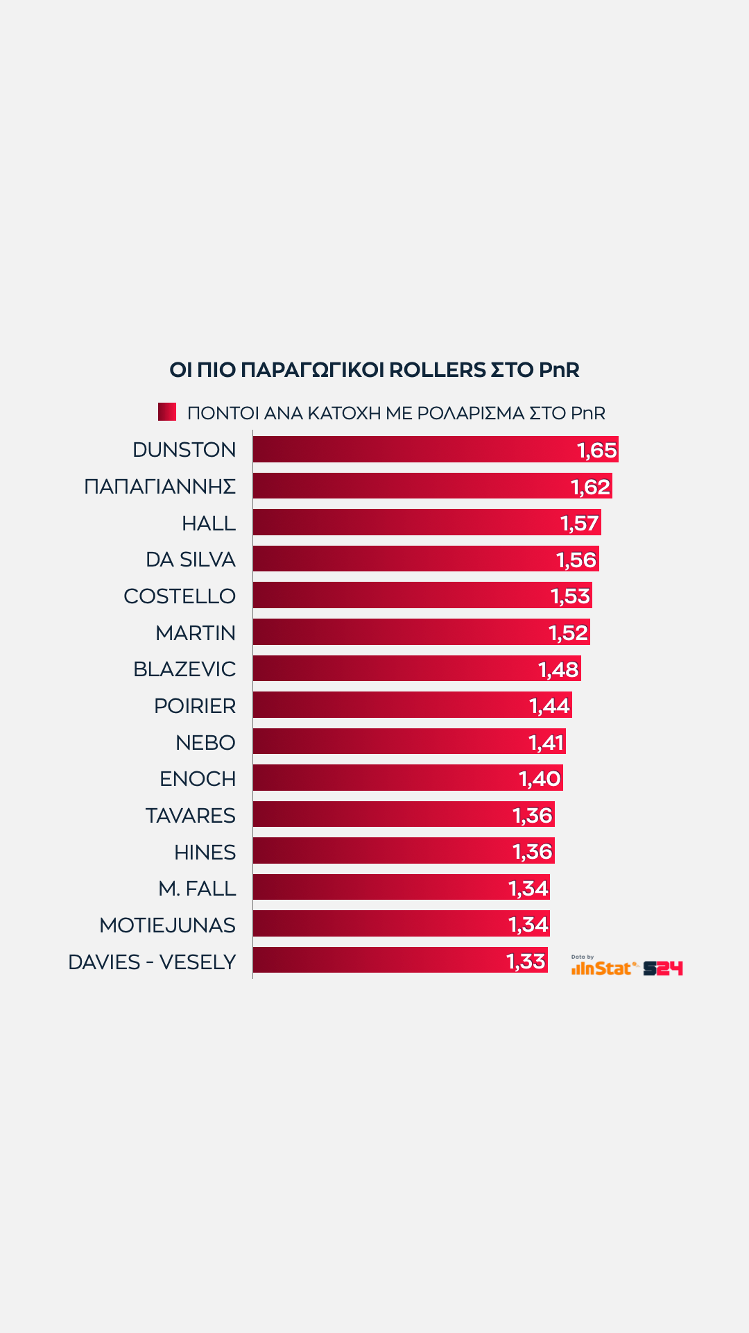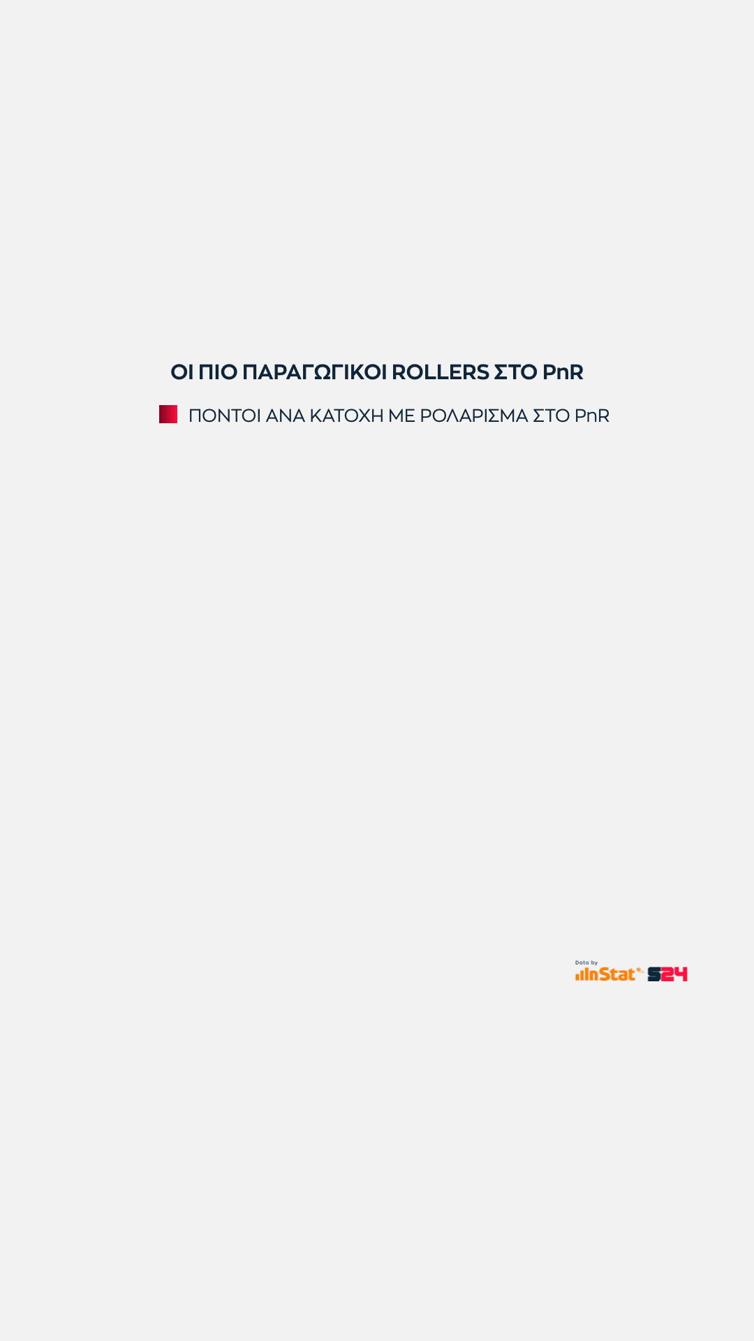 Είναι λογικό οπότε η κατηγορία των πόντων από ρολάρισμα ανά κατοχή να γεμίζει από ψηλούς που και άμεση αντίδραση διαθέτουν και άριστη επαφή με το καλάθι.