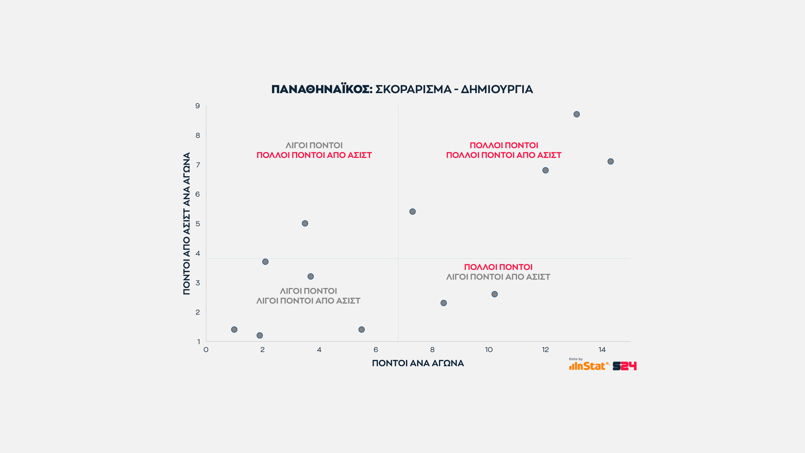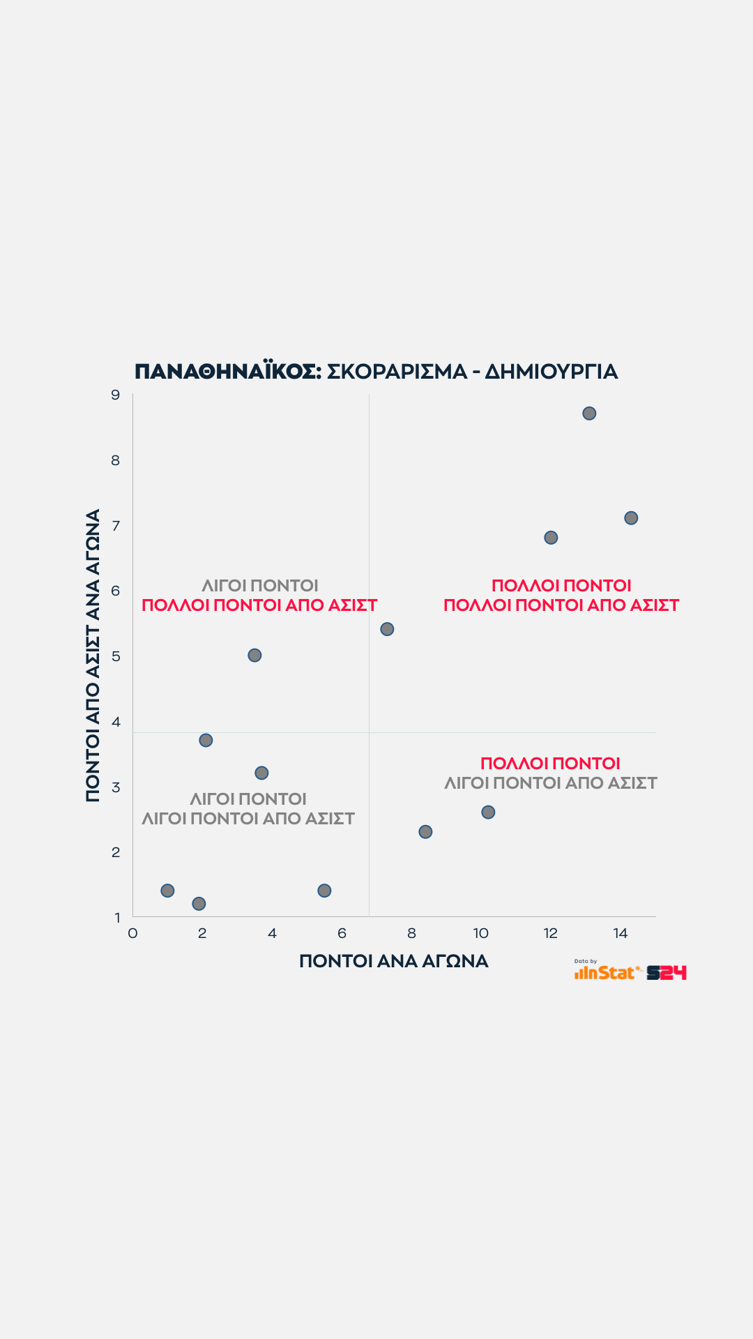 Οι κορυφαίοι σκόρερ βρίσκονται δεξιότερα, οι καλύτεροι δημιουργοί κινούνται προς τα πάνω.