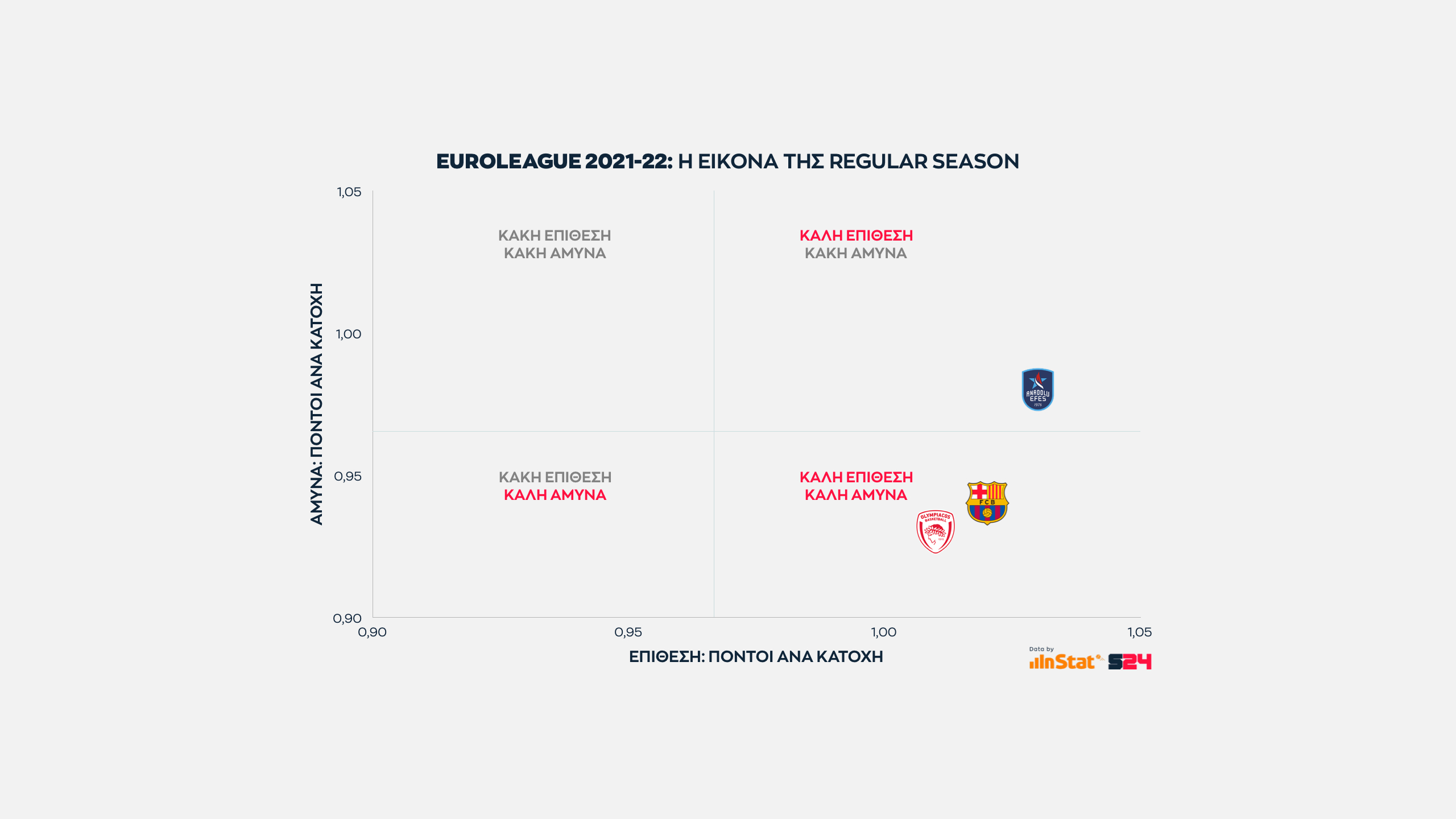 Στο πρώτο γράφημα αποτυπώνεται η ικανότητα κάθε ομάδας σε επίθεση και άμυνα (ανά κατοχή). Είναι αυτό που αποτυπώνει την πραγματικότητα.