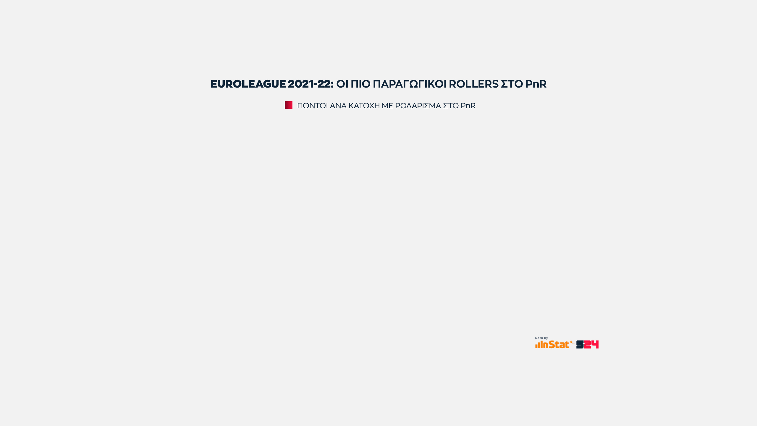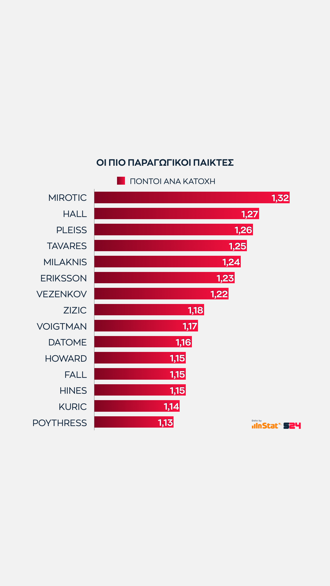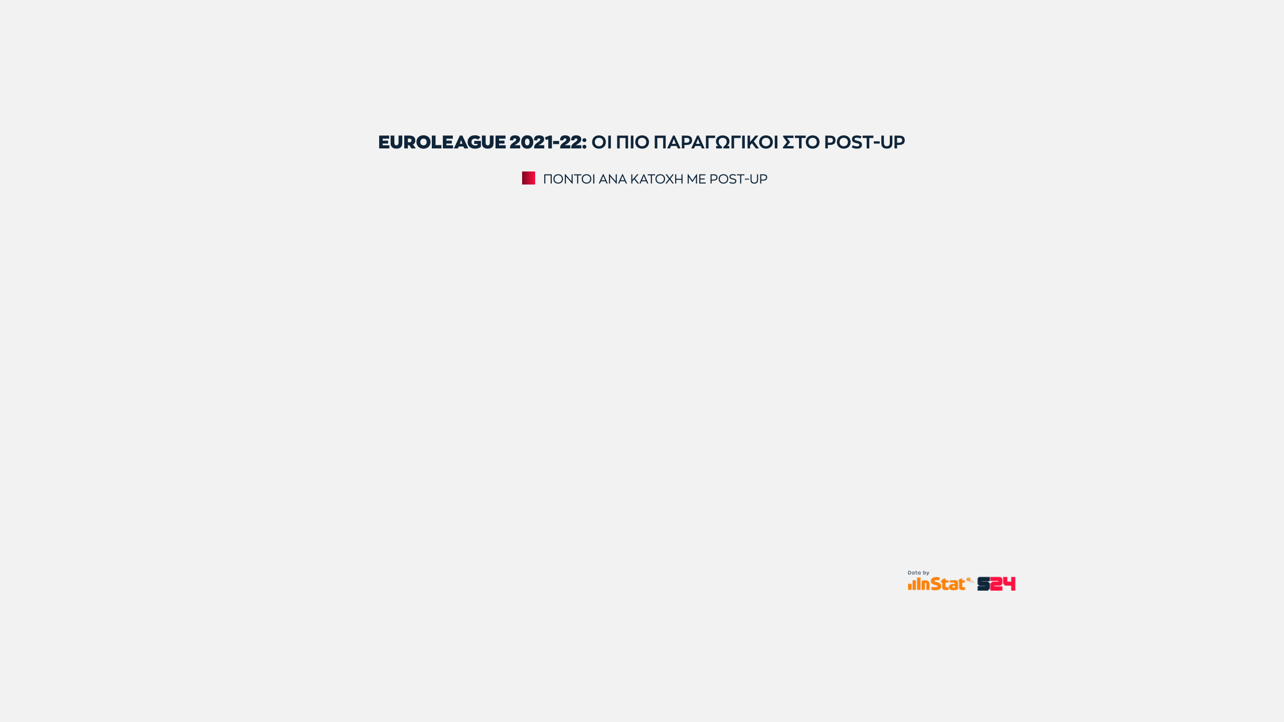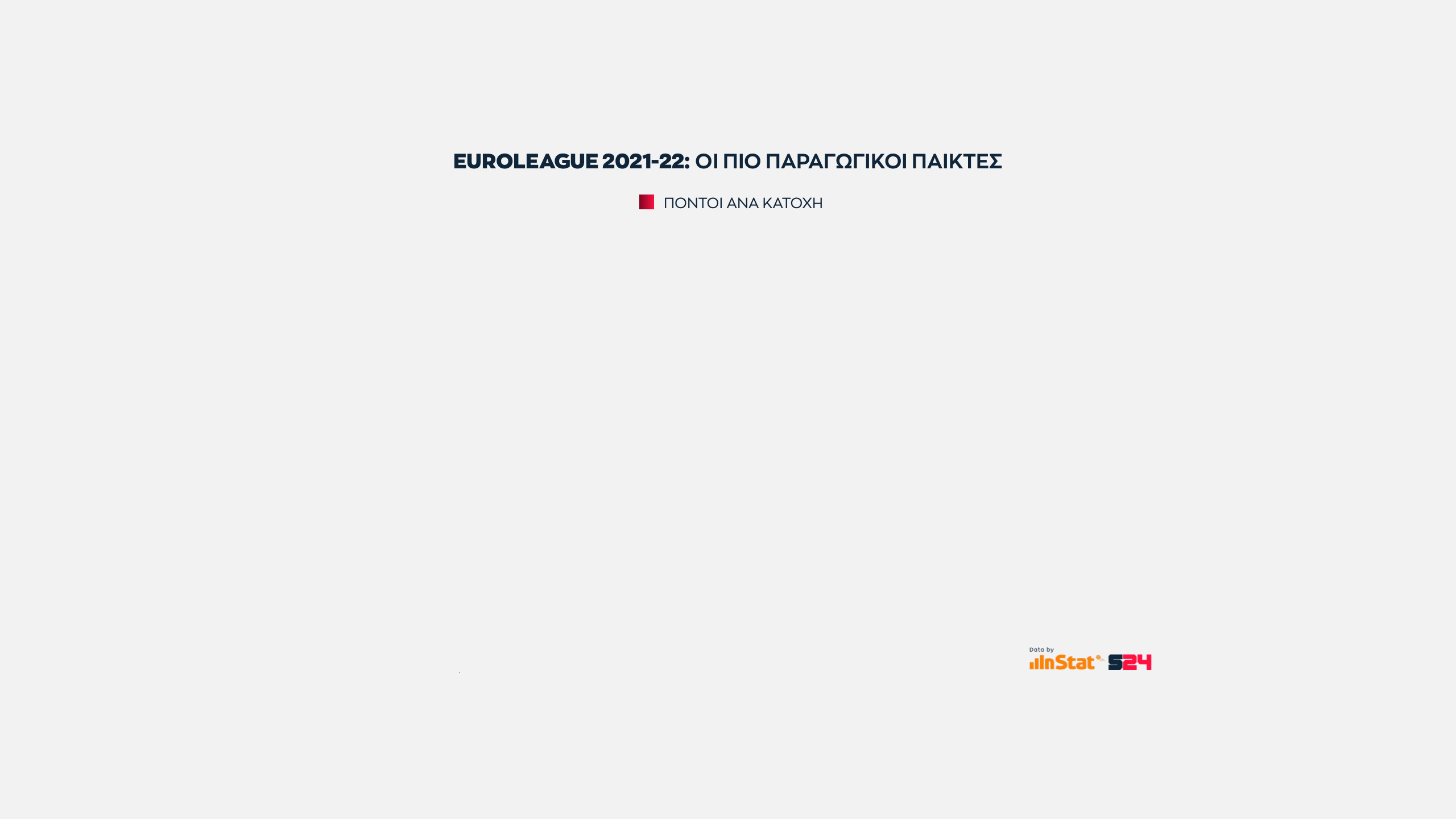 Αυτό που έχει αξία είναι πως ο Βούλγαρος φόργουορντ προσφέρει την καλύτερη αναλογία πόντων ανά κατοχή κι αυτός ο αριθμός τον φέρνει στην πρωτιά.