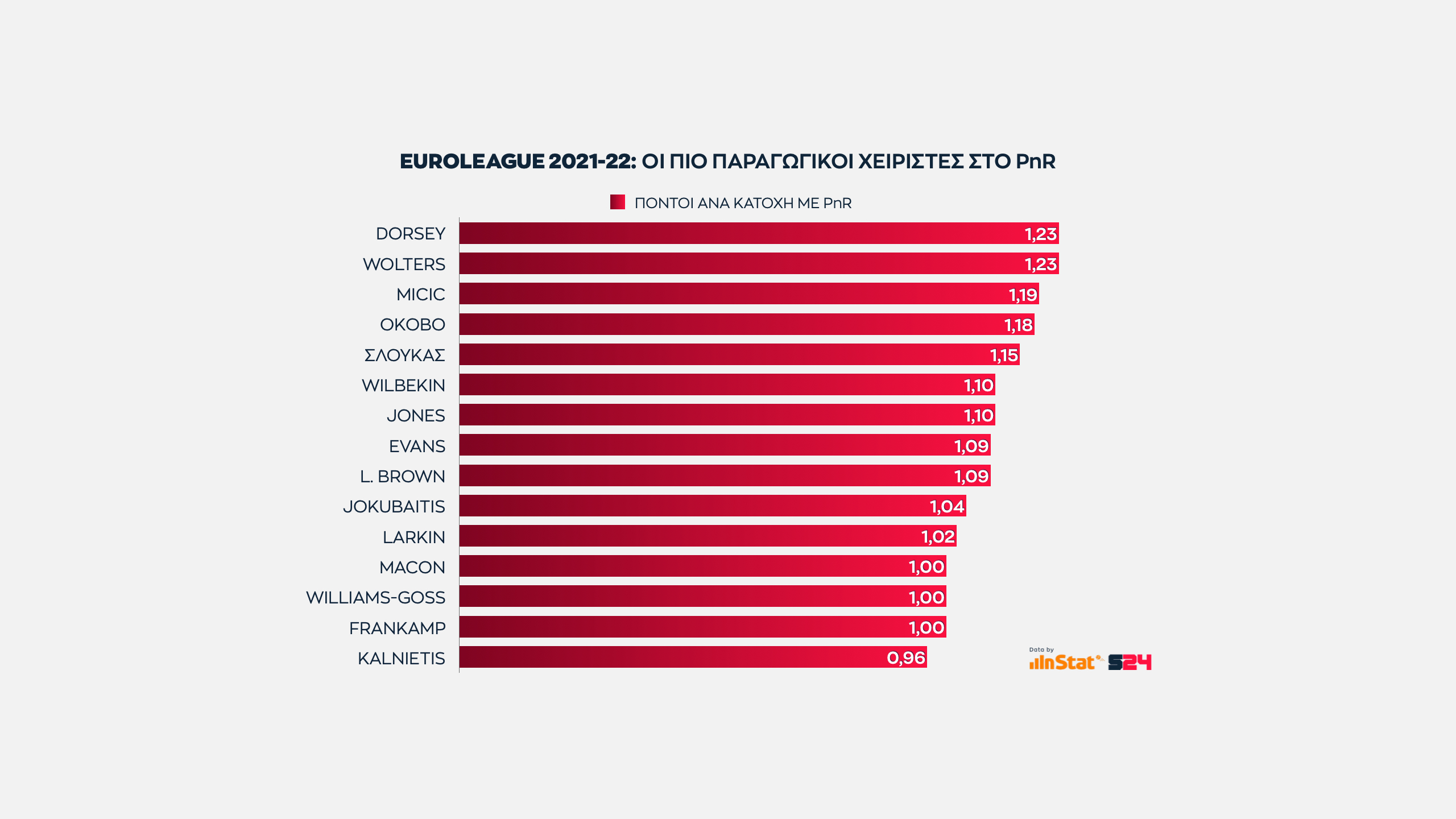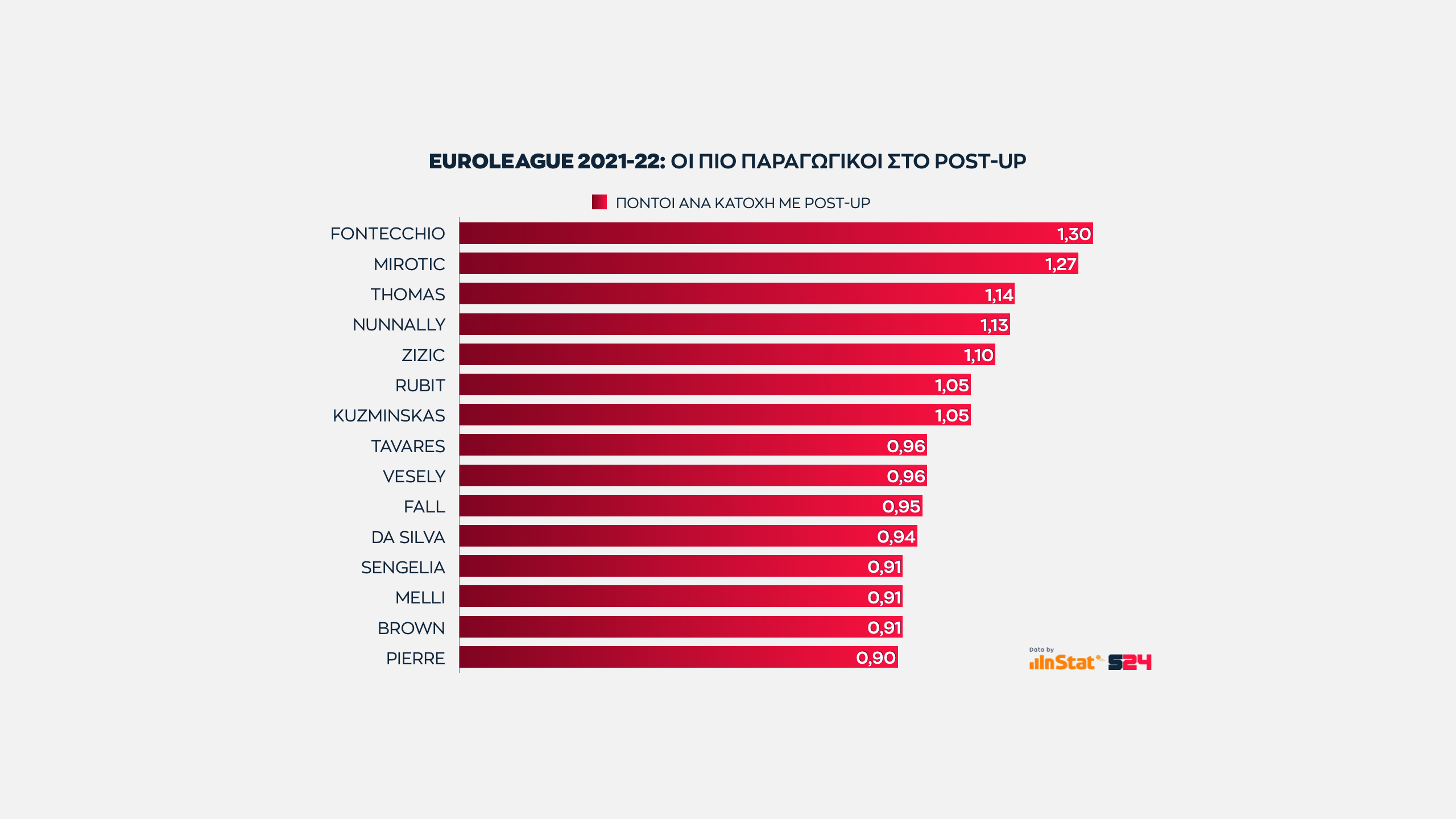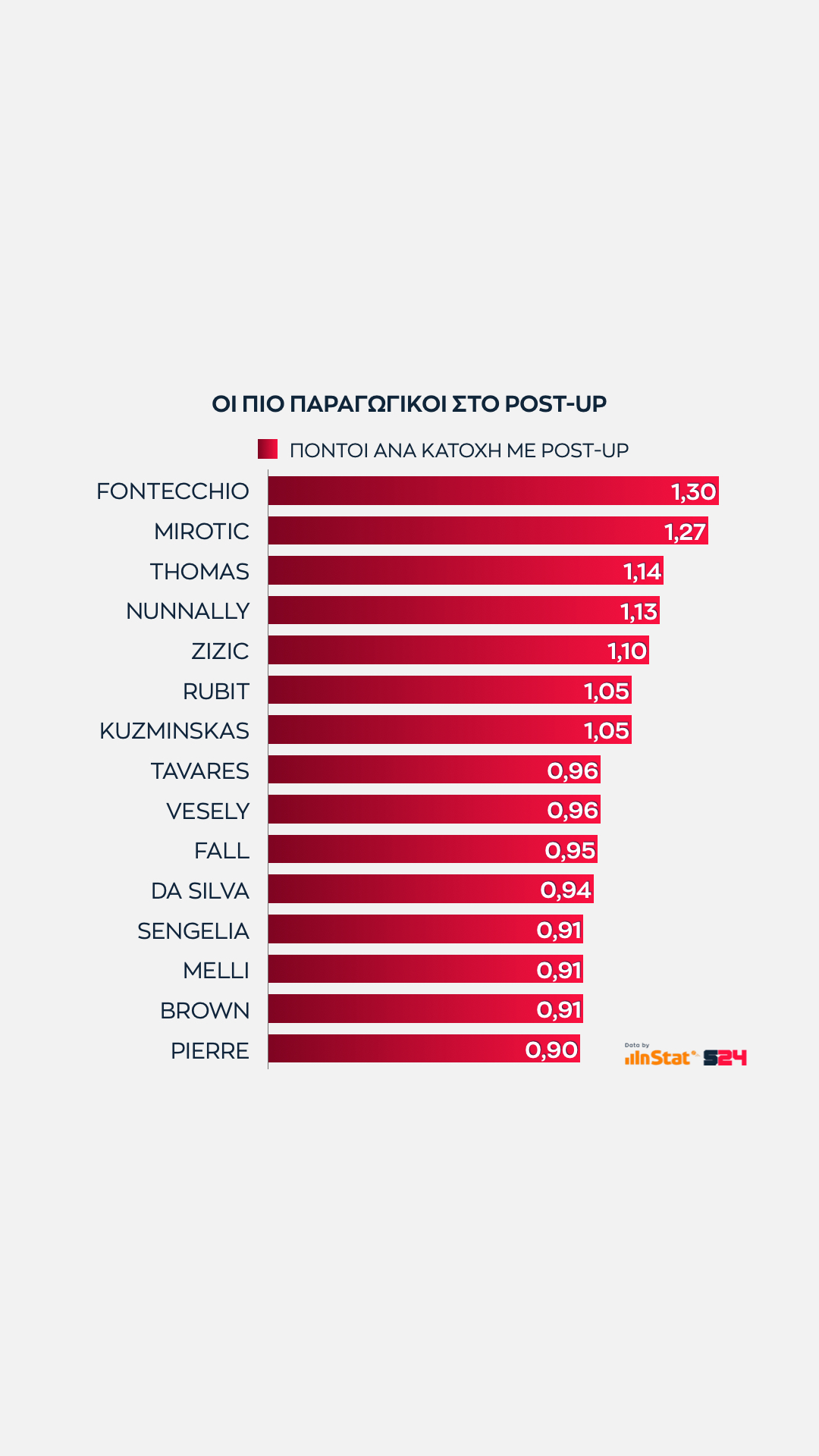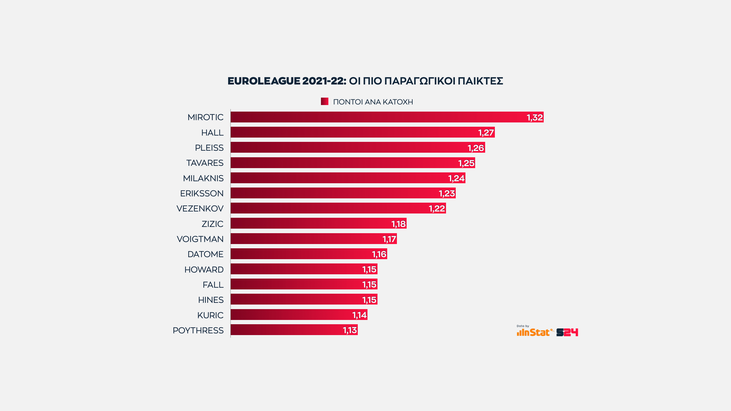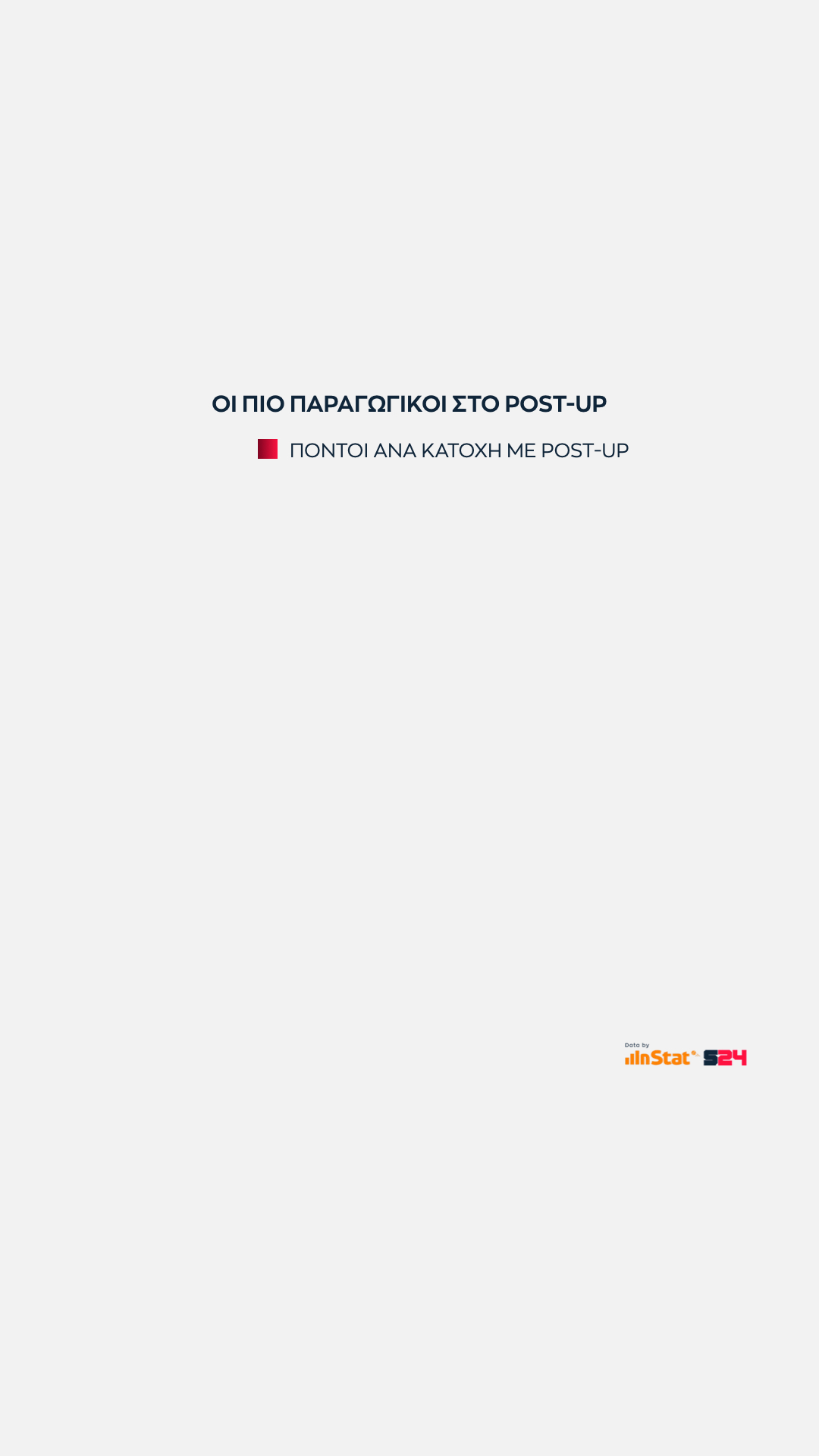 Αυτό που έχει αξία είναι πως ο Βούλγαρος φόργουορντ προσφέρει την καλύτερη αναλογία πόντων ανά κατοχή κι αυτός ο αριθμός τον φέρνει στην πρωτιά.