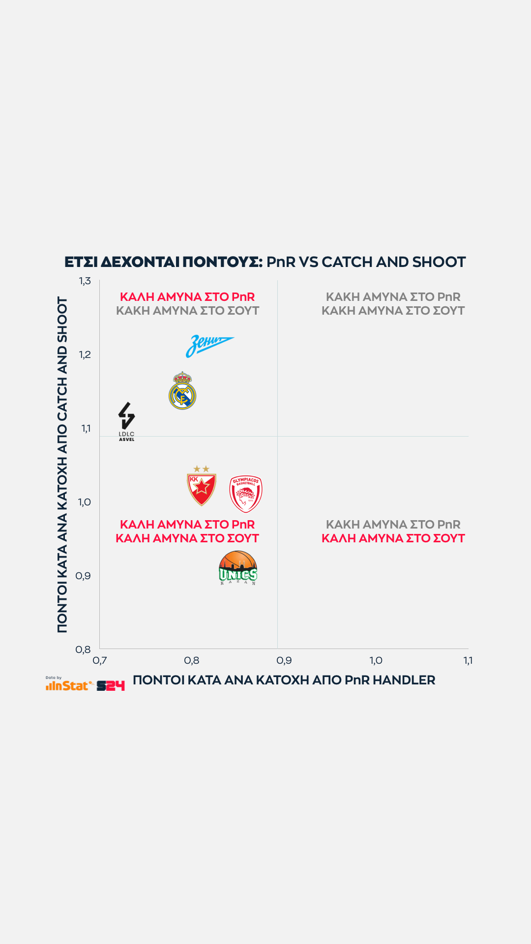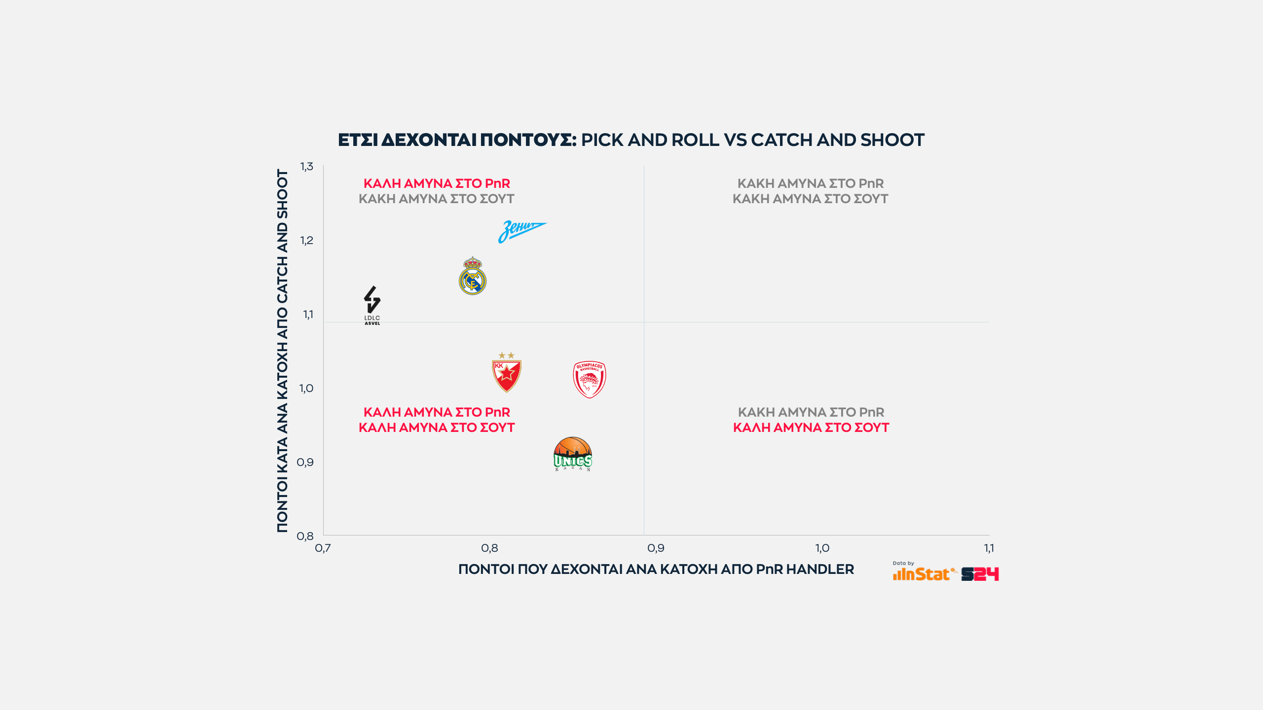 Ενδιαφέρουσα η θέση των Βιλερμπάν, Ρεάλ και Ζενίτ, των οποίων η πενιχρή αποτελεσματικότητα στο catch and shoot είναι αντιστρόφως ανάλογη της ικανότητας να στερήσουν από τον αντίπαλο χειριστή ένα άνετο τελείωμα.