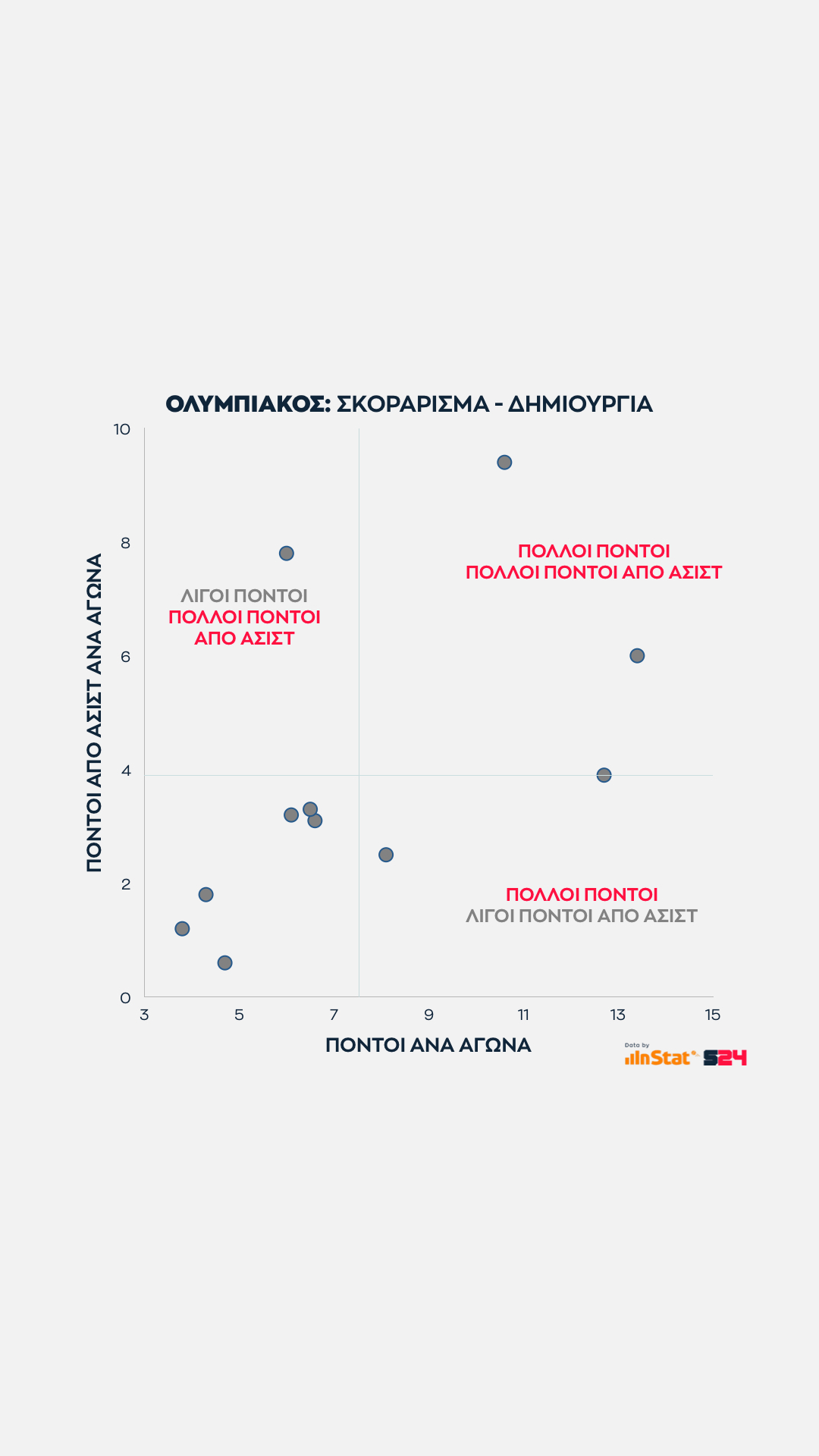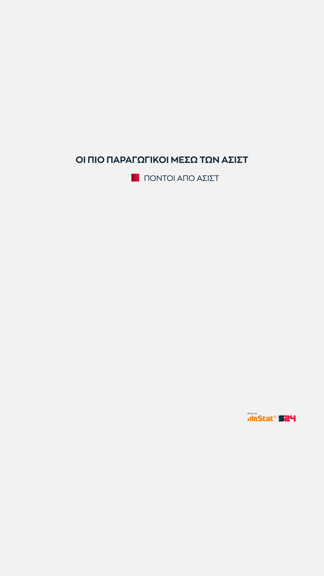 Κλείνουμε με την αναλογία πόντων ατομικού σκοραρίσματος προς του πόντους που προσφέρει ο κάθε παίκτης μέσα από ασίστ που δημιουργεί.