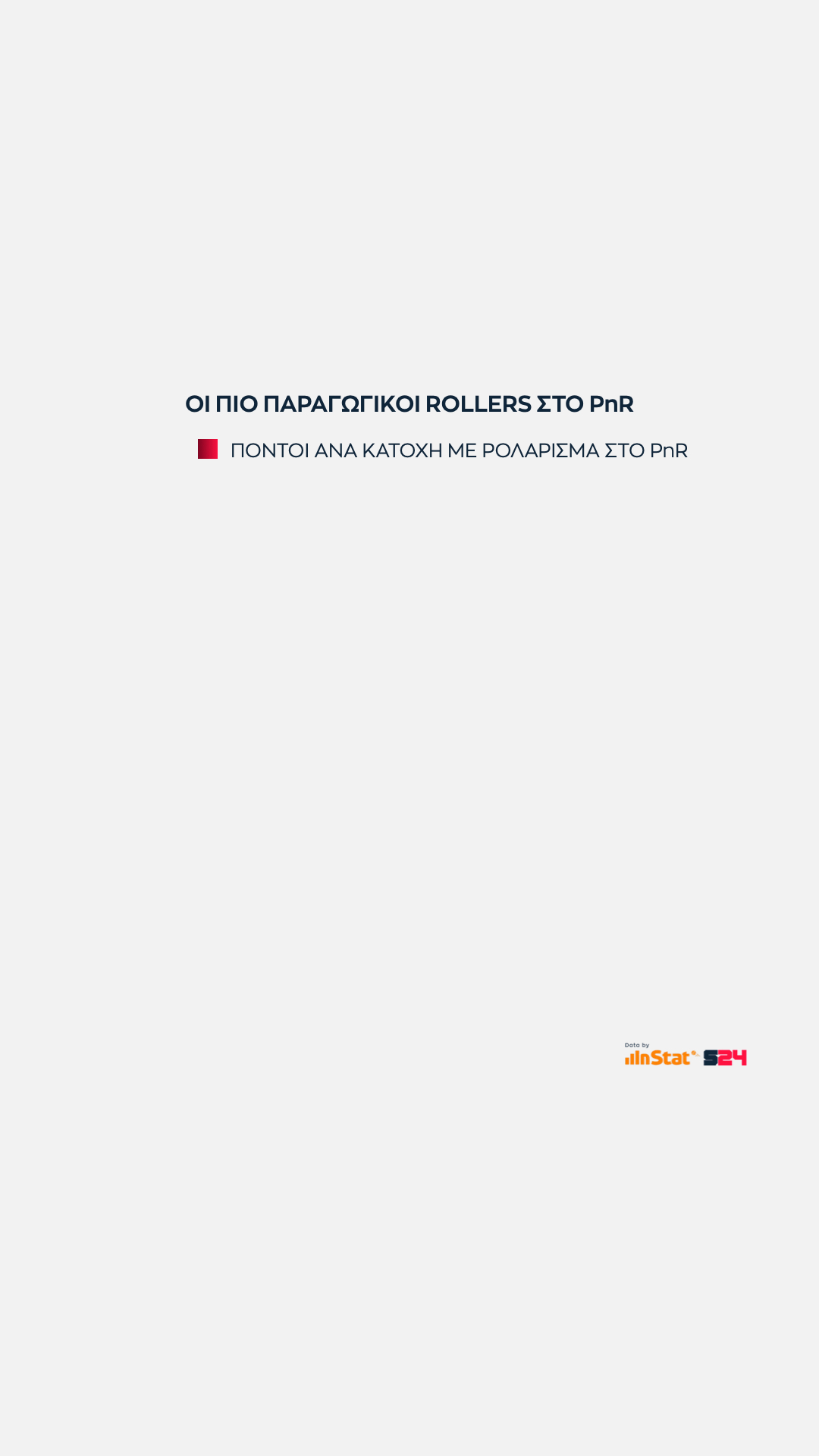 Είναι λογικό η κατηγορία των πόντων από ρολάρισμα ανά κατοχή να γεμίζει από ψηλούς που διαθέτουν άριστη επαφή με το καλάθι και δύσκολα κόβονται σε πλεονεκτική θέση. Καθένας εξ αυτών έχει τελειώσει τουλάχιστον 15 επιθέσεις.