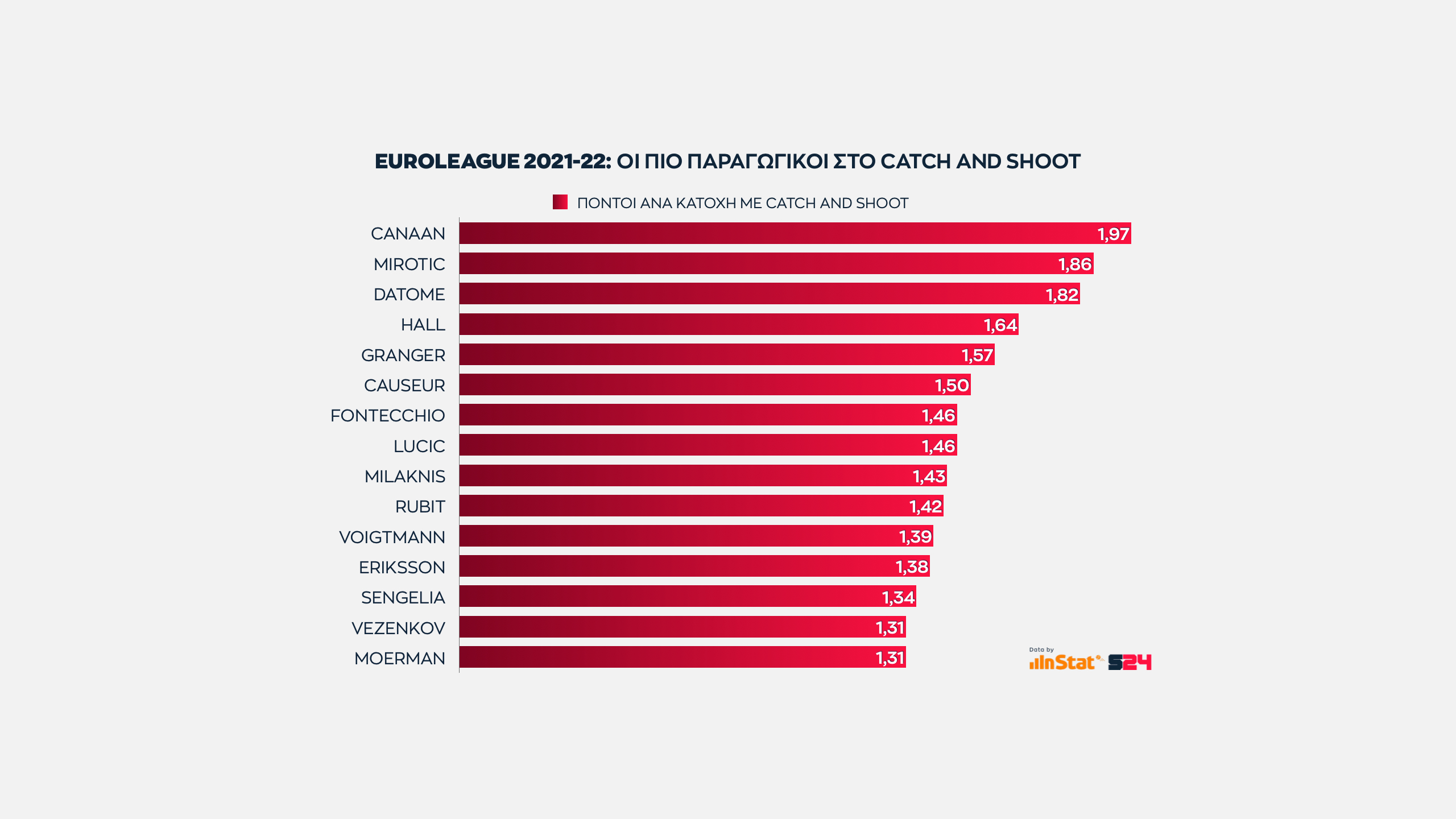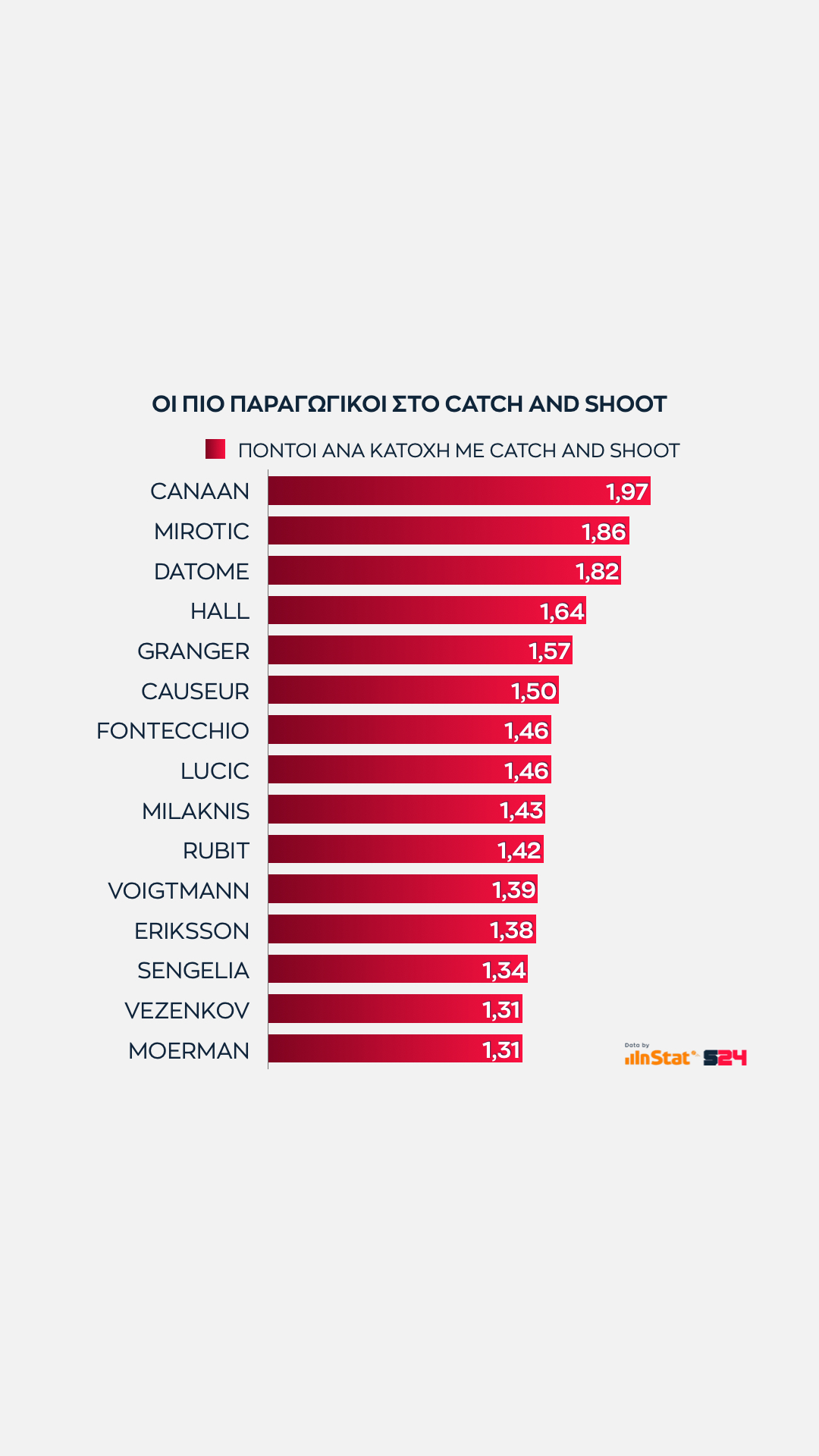 Το γράφημα παρουσιάζει όσους όχι μόνο σουτάρουν με συνέπεια, αλλά αυτούς που προσφέρουν τους περισσότερους πόντους ανά κατοχή από καταστάσεις άμεσης εκτέλεσης.