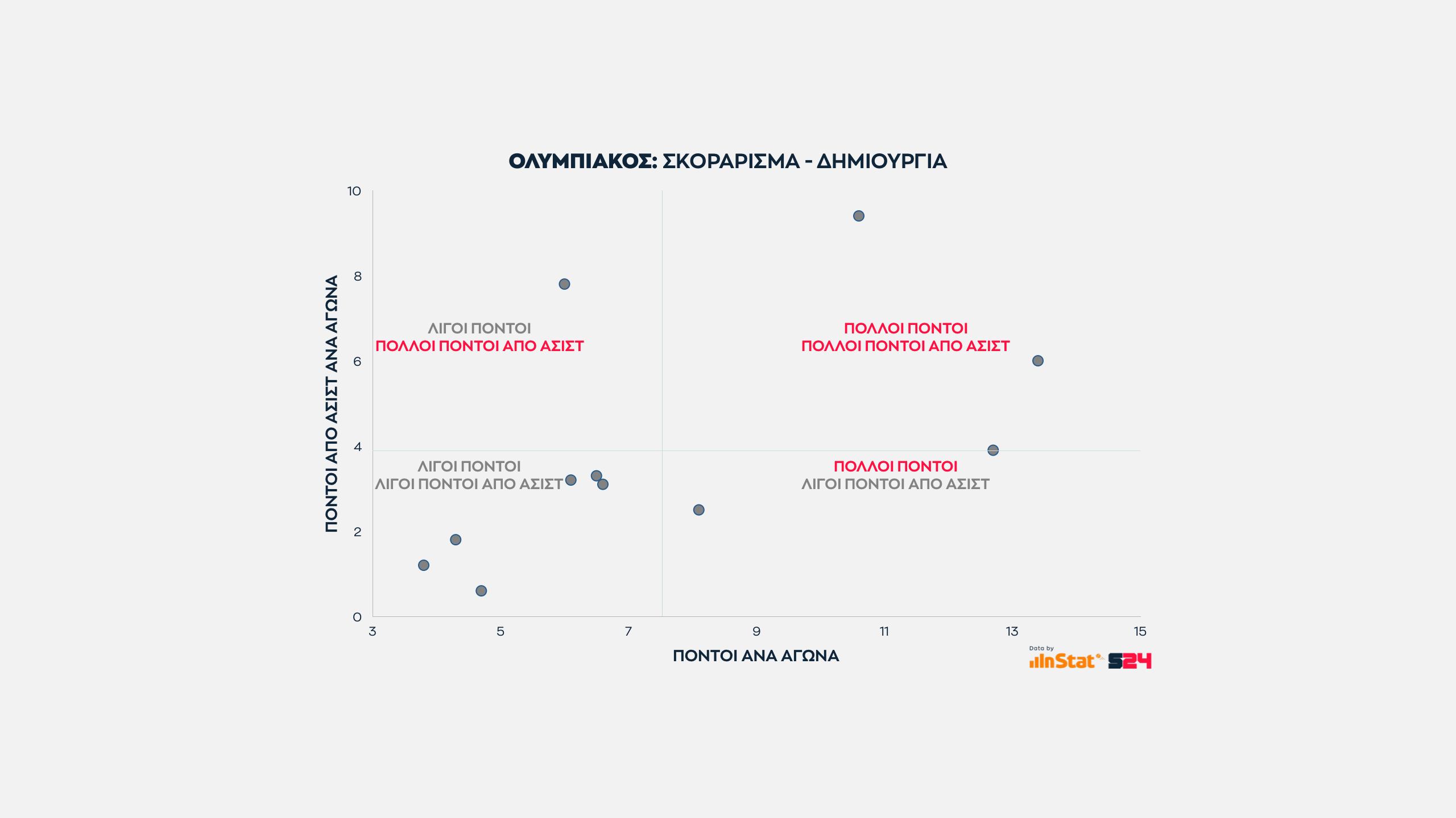 Οι κορυφαίοι σκόρερ κινούνται όσο το δυνατόν δεξιότερα και οι ποιοτικότεροι δημιουργοί κινούνται ψηλά.