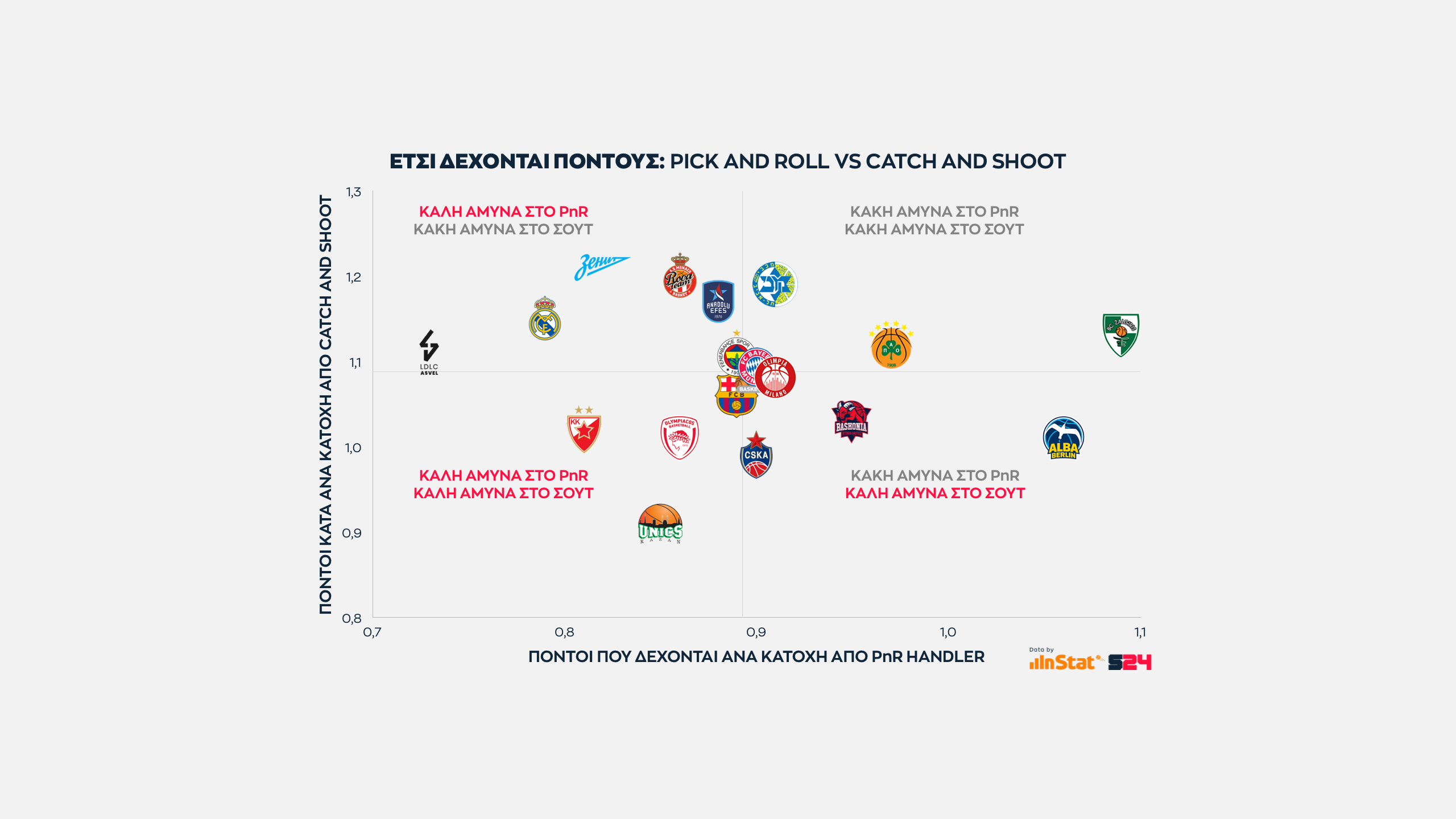 Στο γκρουπ με την ASVEL ανήκει ο Παναθηναϊκός, που αναζητά και βρίσκει σταθερά περισσότερο σκορ από καταστάσεις PnR.