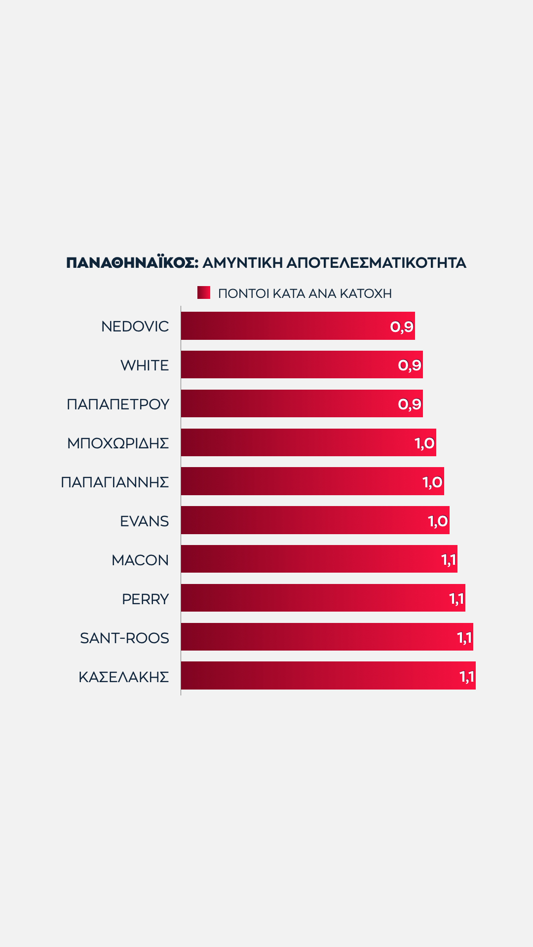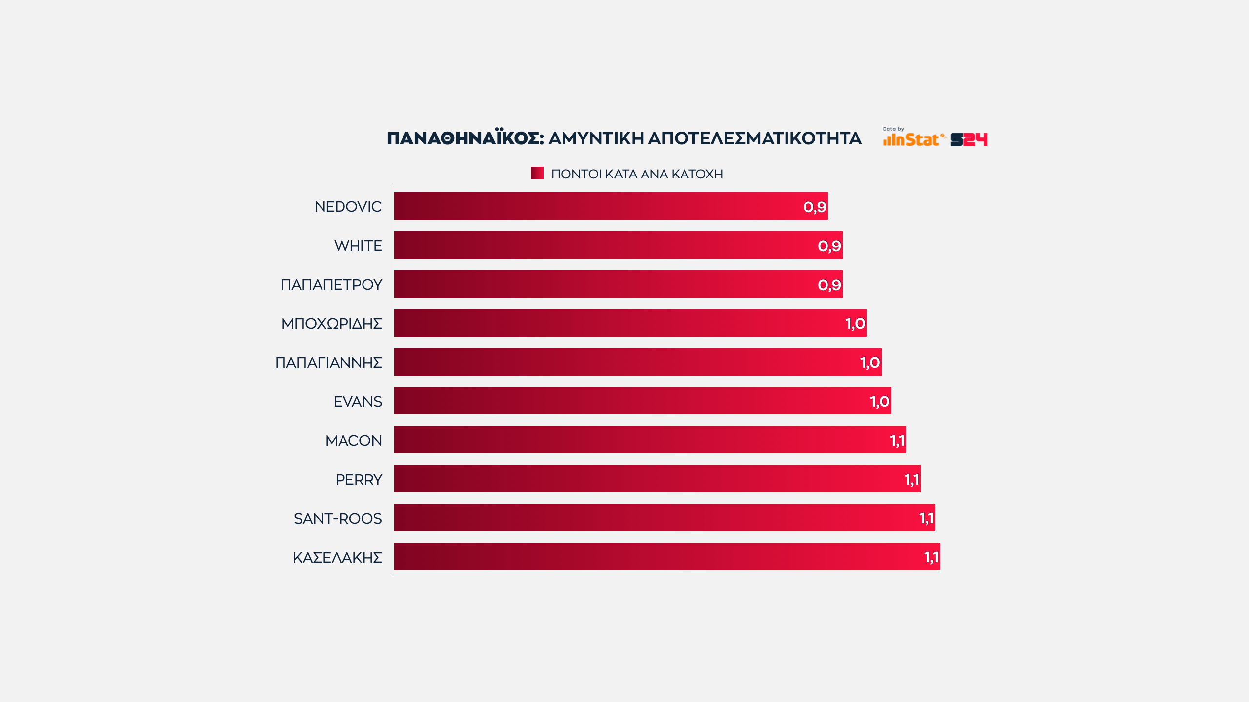 Συνολικά είναι μάλιστα επτά οι παίκτες που δέχονται τουλάχιστον 1 πόντο ανά κατοχή.