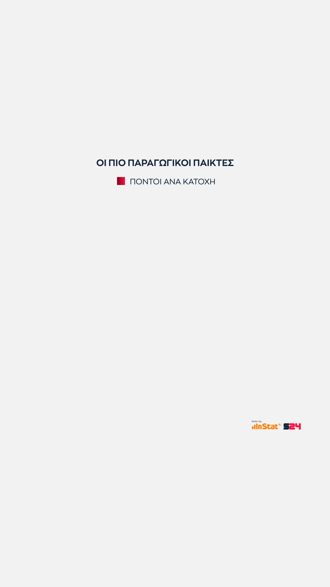 Αφετηρία αποτελεί η αποτελεσματικότητα ανά κατοχή κάθε παίκτη (μίνιμουμ 50 προσπάθειες).