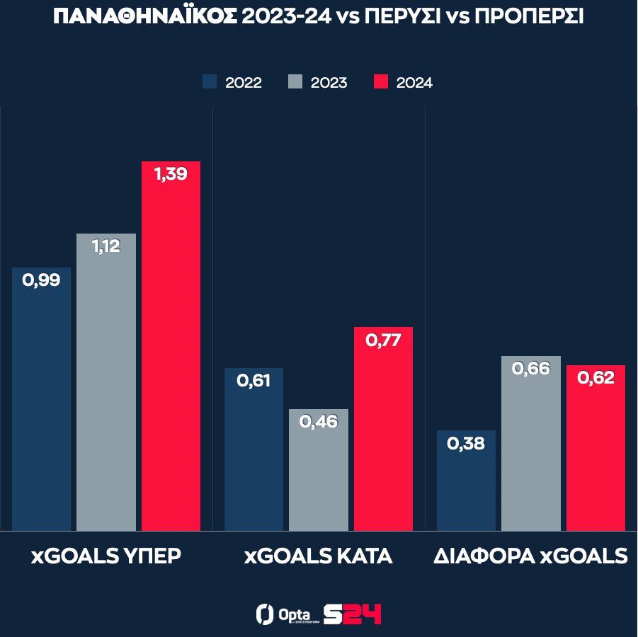 Σαν να μην έφτανε αυτό, ο Παναθηναϊκός δεν βρήκε ποτέ φέτος την περσινή του αμυντική ασφάλεια: από το 0.46 ανέβηκε στο 0.77.
