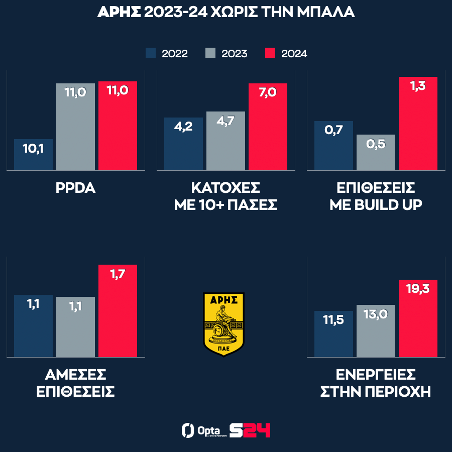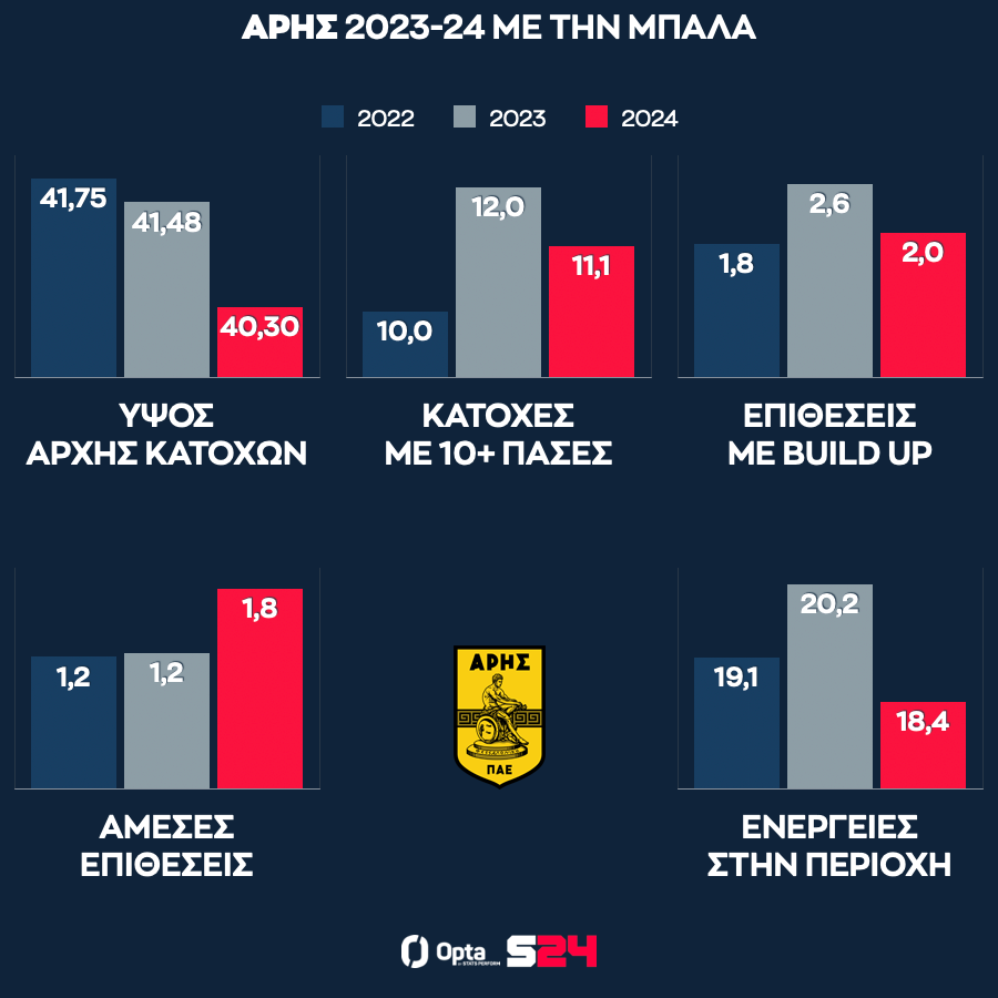 Παρόμοια είναι η αίσθηση αν κοιτάξει κανείς τη σύγκριση του Άρη με τον εαυτό του τις προηγούμενες σεζόν.