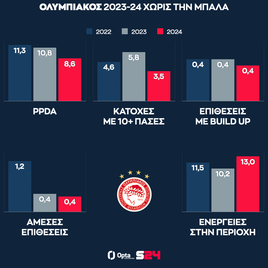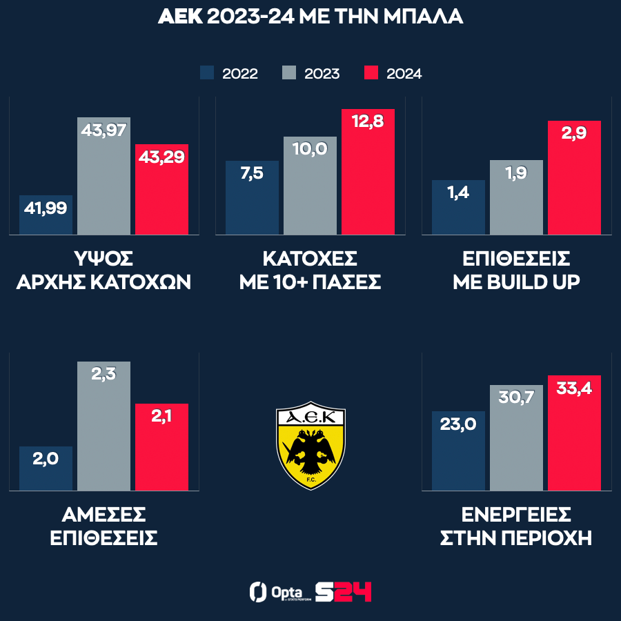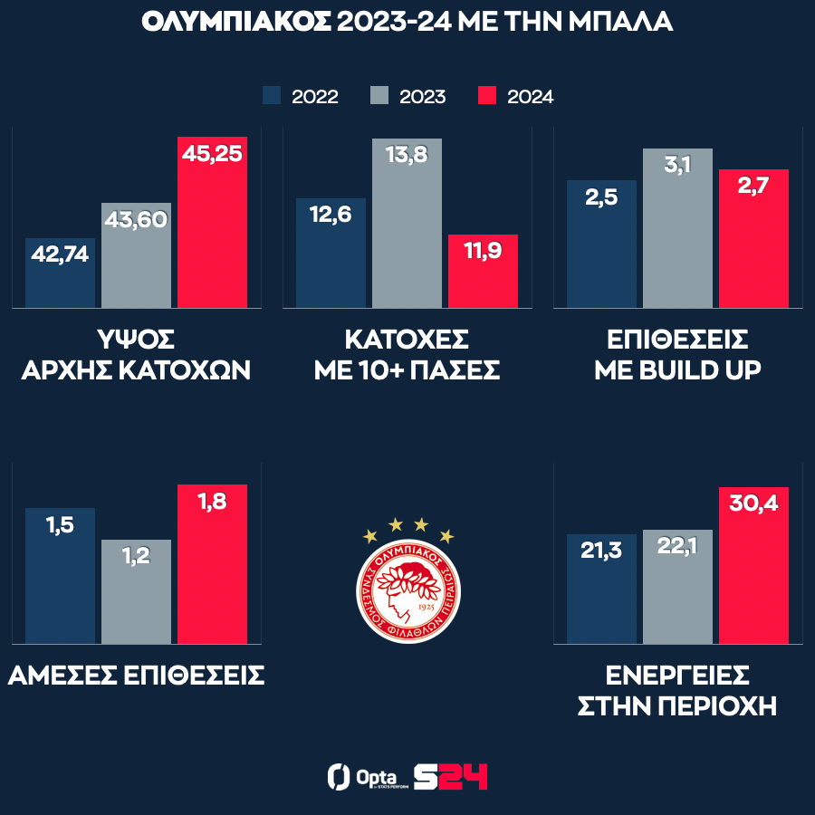 Παρέμεινε βέβαια η τοπ ομάδα στην περιοχή του αντιπάλου: πέρυσι έγινε η πρώτη ομάδα με μέσο όρο 30+ ενέργειες, φέτος σκαρφάλωσε στις 33.4.