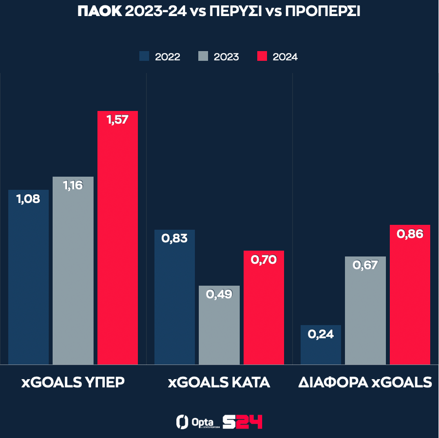 Αρχίζουμε τη ματιά στον ΠΑΟΚ με τα xGoals και τη σύγκριση με τον εαυτό του και τις δύο προηγούμενες σεζόν.