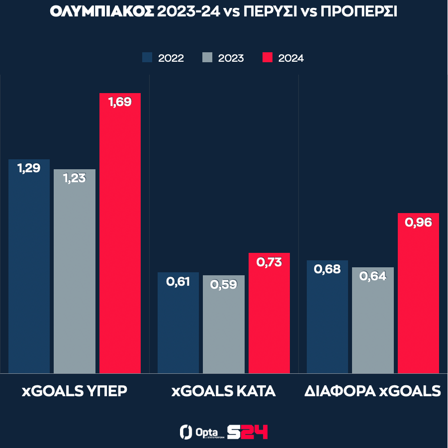 Ο Ολυμπιακός πάτησε γκάζι στο τέλος της κανονικής διάρκειας και τερμάτισε με 1.69, την καλύτερη επιθετική επίδοση, ενώ στην άμυνα δεν είχε μεγάλη επιδείνωση.