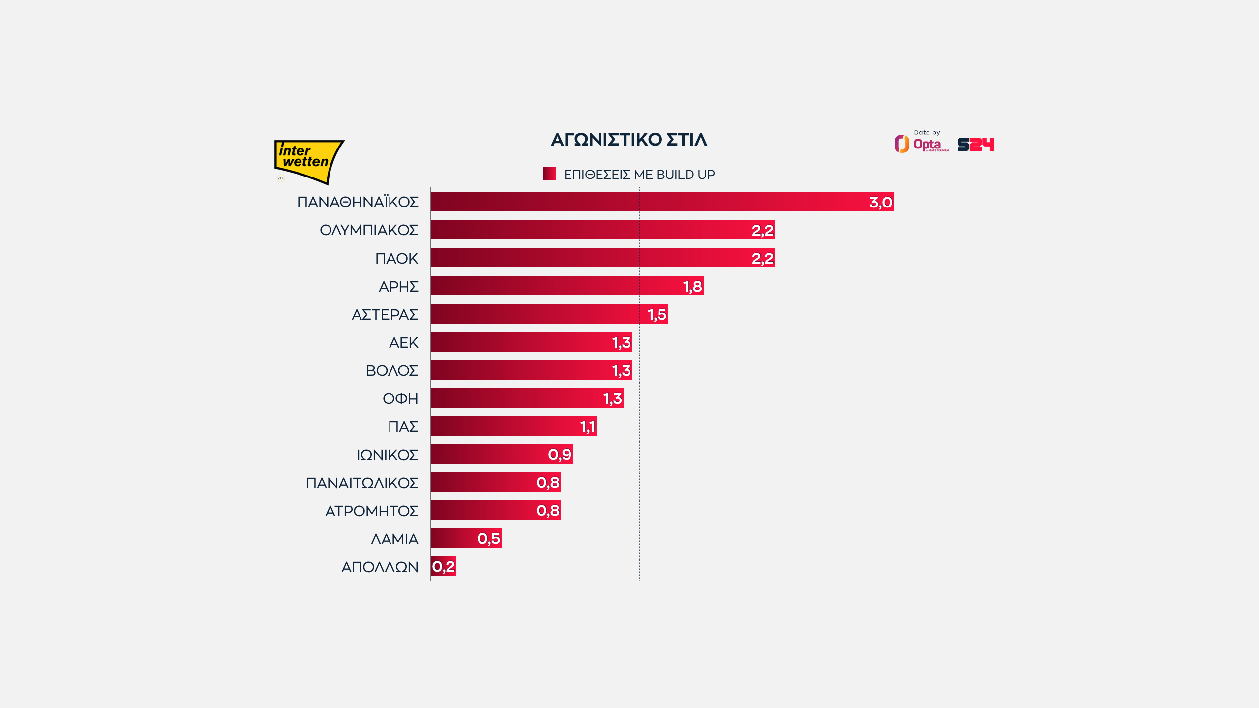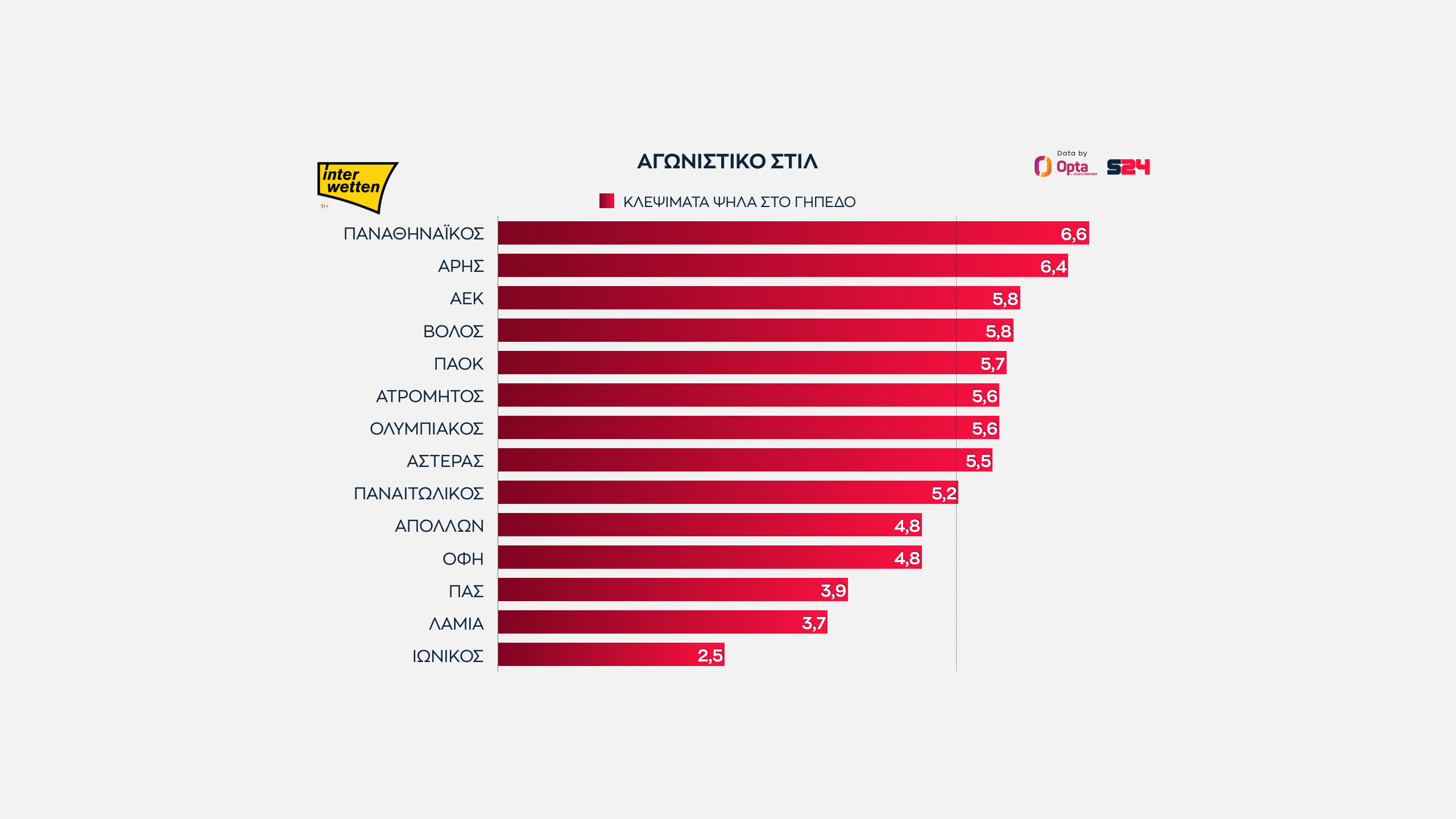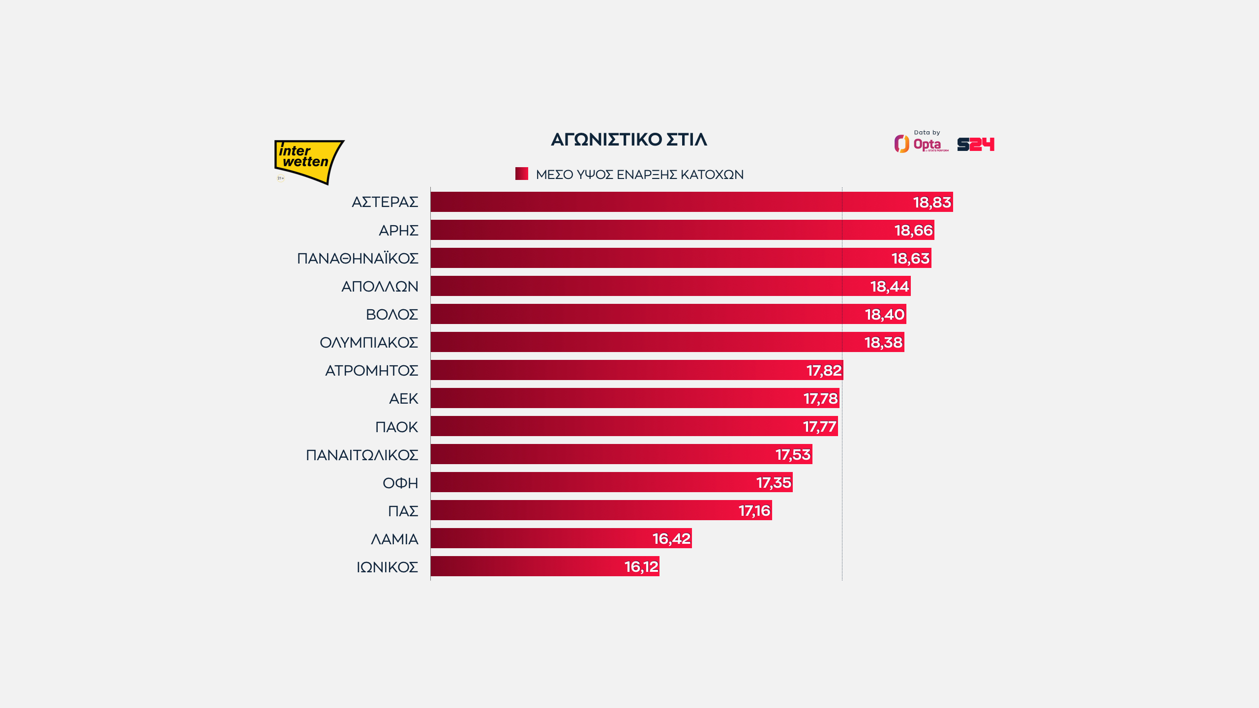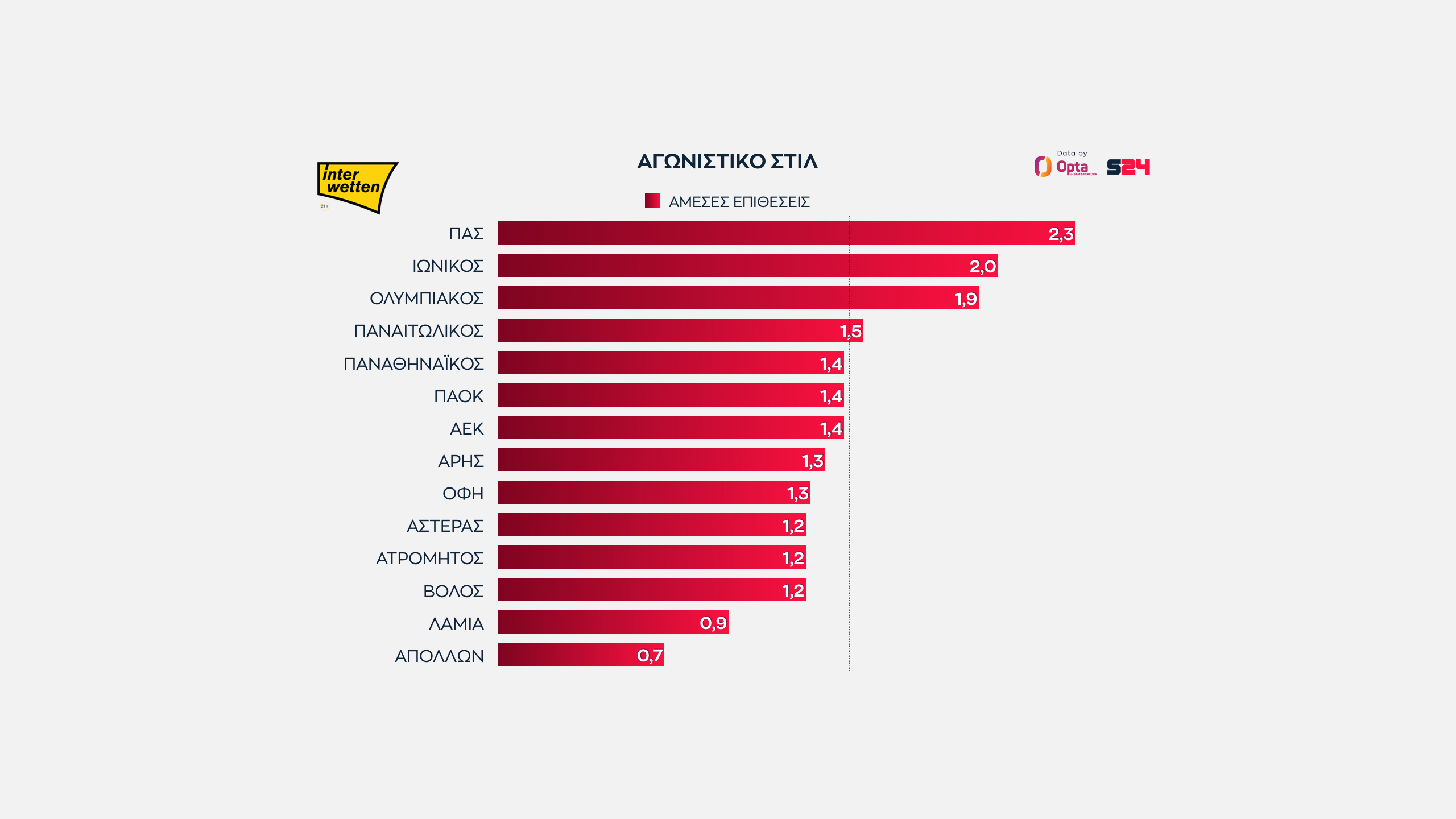 Γεγονότα, όχι απόψεις. Με αυτό το μότο άλλωστε το SPORT24 συνεργάζεται για δεύτερη σερί χρονιά με την Opta/Stats Perform, την κορυφαία εταιρεία στατιστικής αθλητικών γεγονότων στον κόσμο, για την κάλυψη του ελληνικού πρωταθλήματος.