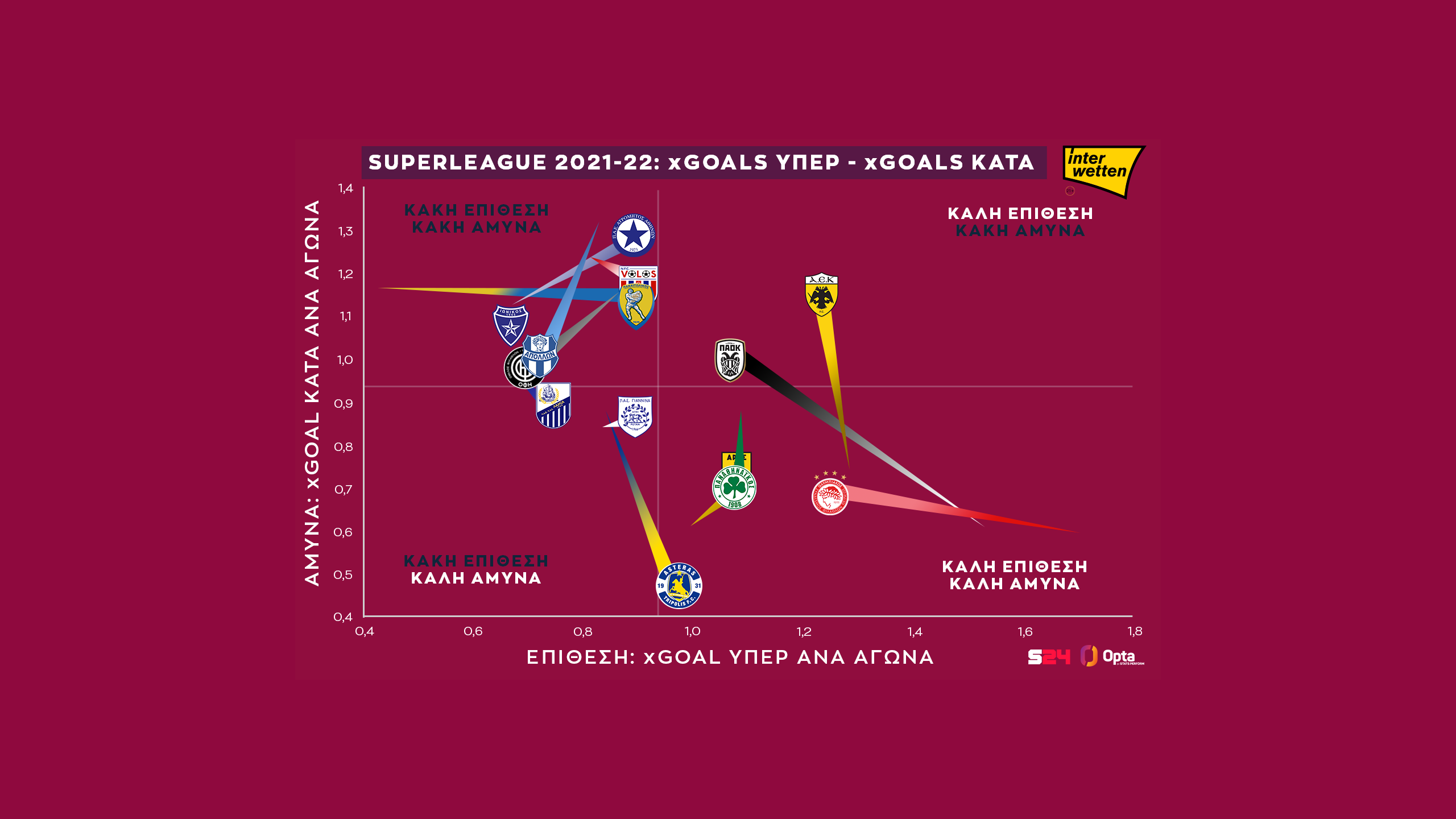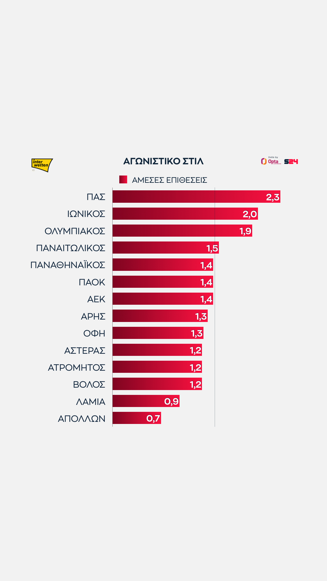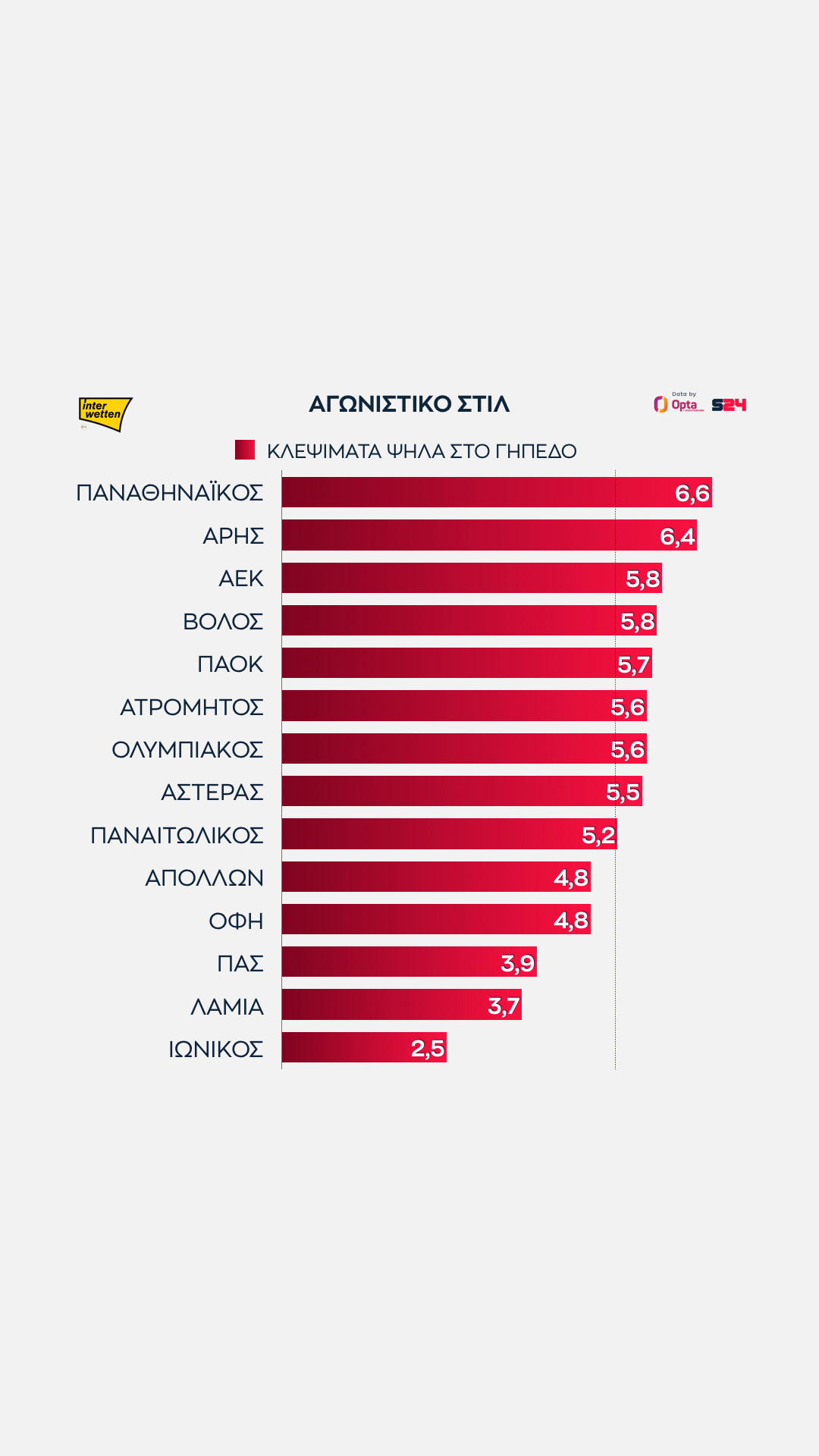 Γεγονότα, όχι απόψεις. Με αυτό το μότο άλλωστε το SPORT24 συνεργάζεται για δεύτερη σερί χρονιά με την Opta/Stats Perform, την κορυφαία εταιρεία στατιστικής αθλητικών γεγονότων στον κόσμο, για την κάλυψη του ελληνικού πρωταθλήματος.