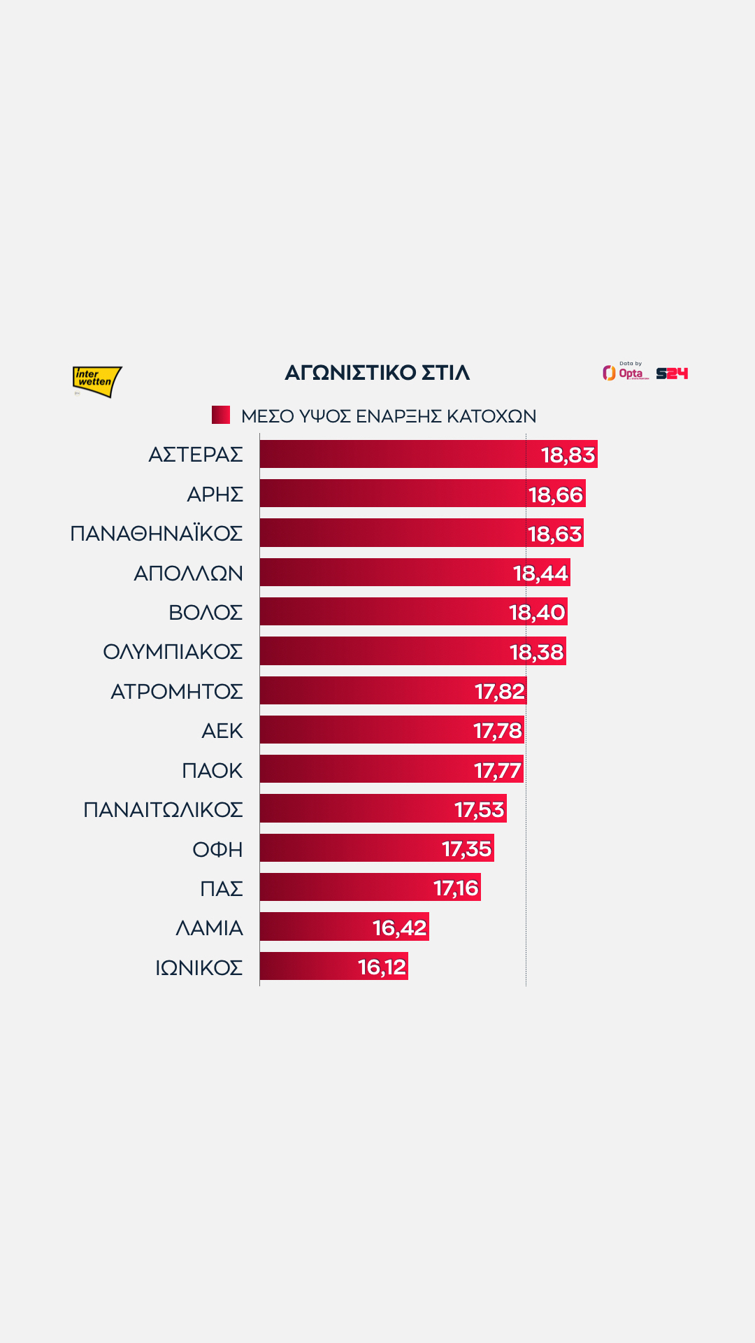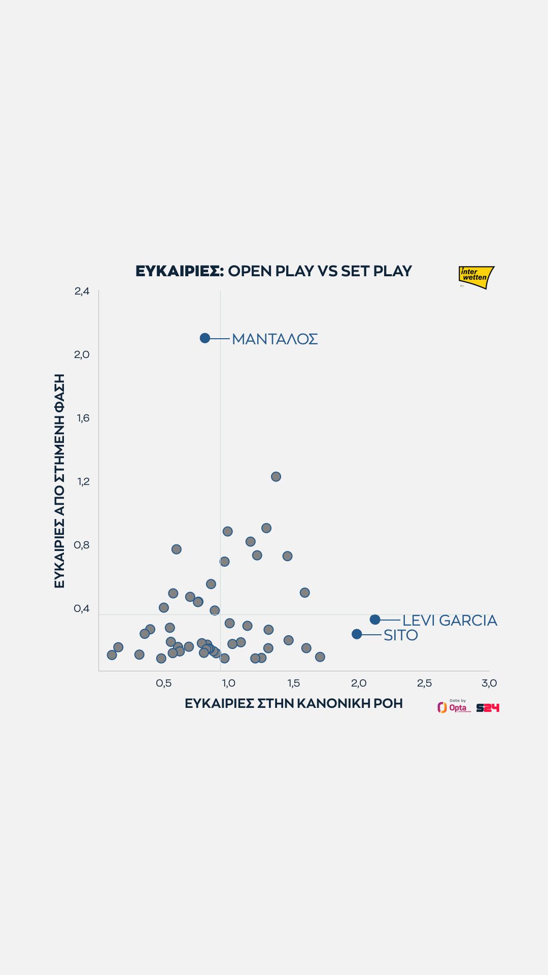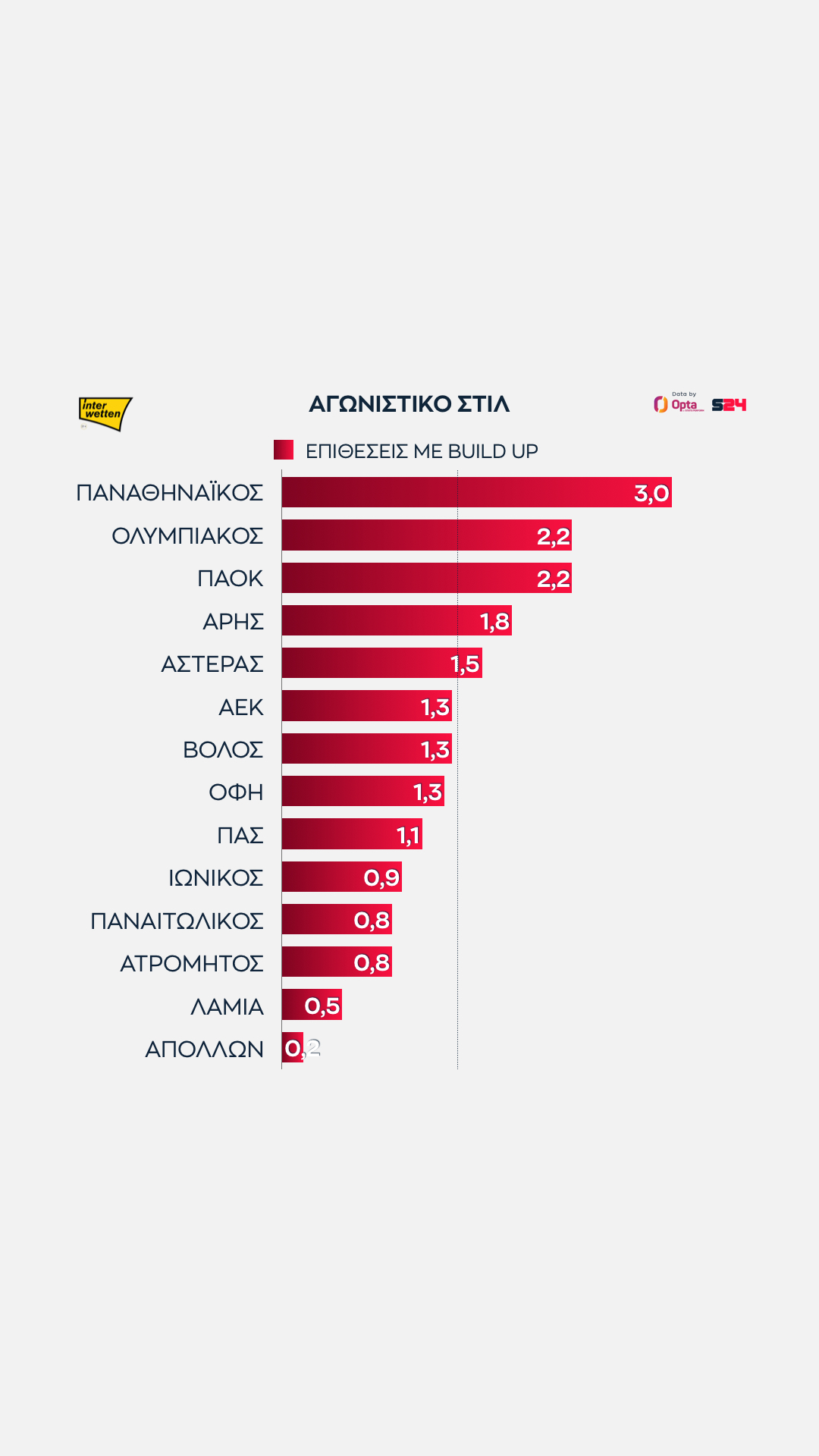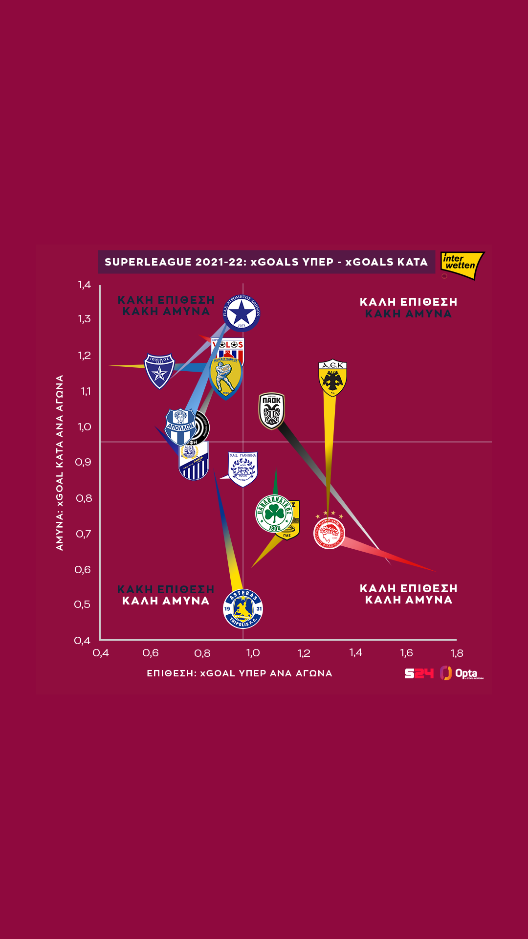 Γεγονότα, όχι απόψεις. Με αυτό το μότο άλλωστε το SPORT24 συνεργάζεται για δεύτερη σερί χρονιά με την Opta/Stats Perform, την κορυφαία εταιρεία στατιστικής αθλητικών γεγονότων στον κόσμο, για την κάλυψη του ελληνικού πρωταθλήματος.