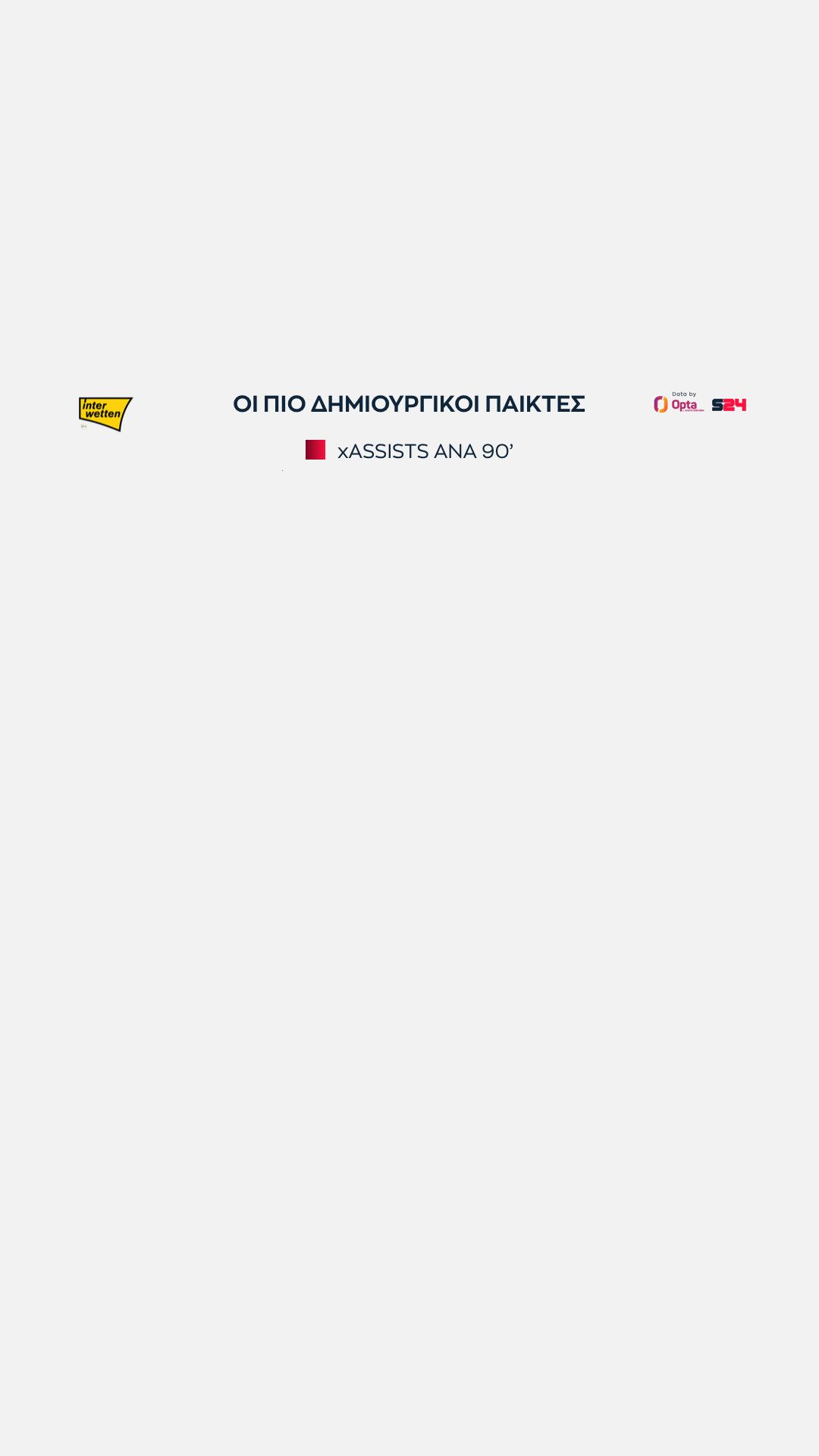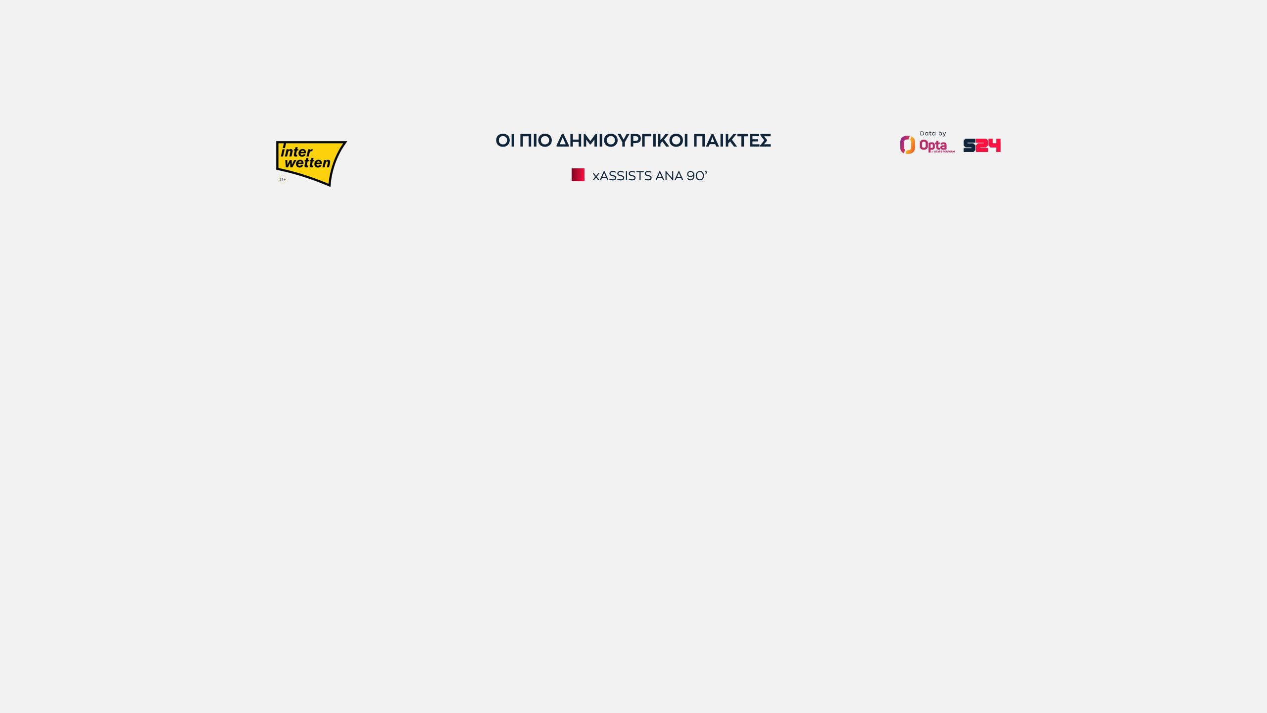 Αυτοί είναι οι 15 κορυφαίοι παίκτες του πρώτου γύρου στις xAssists ανά 90'.