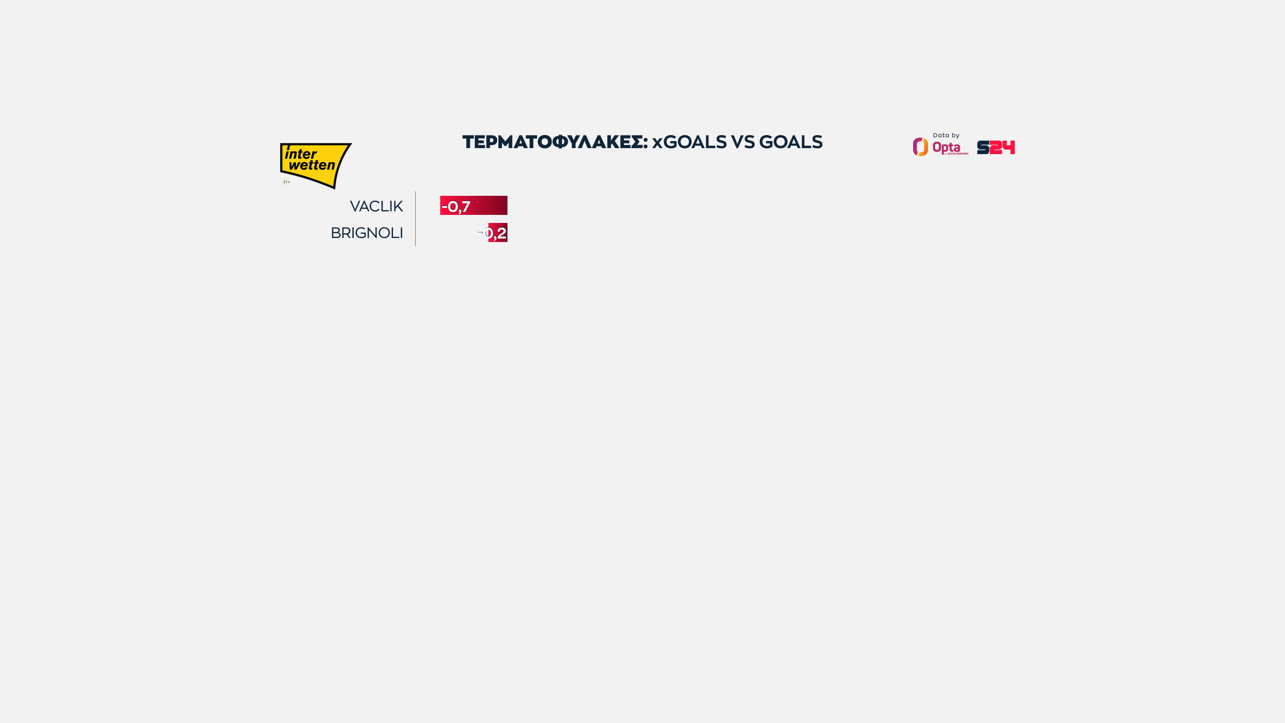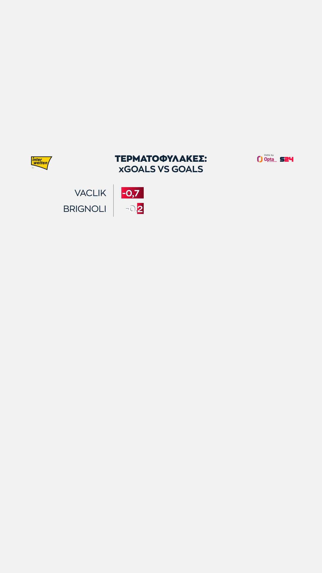 Κι αυτοί χωρίς να βγάλουν μάτια. Ο Βατσλίκ με το 0.7 πλησιάζει το να έχει φάει ένα γκολ λιγότερο, ο Μπρινιόλι απλώς έχει θετικό πρόσημο.