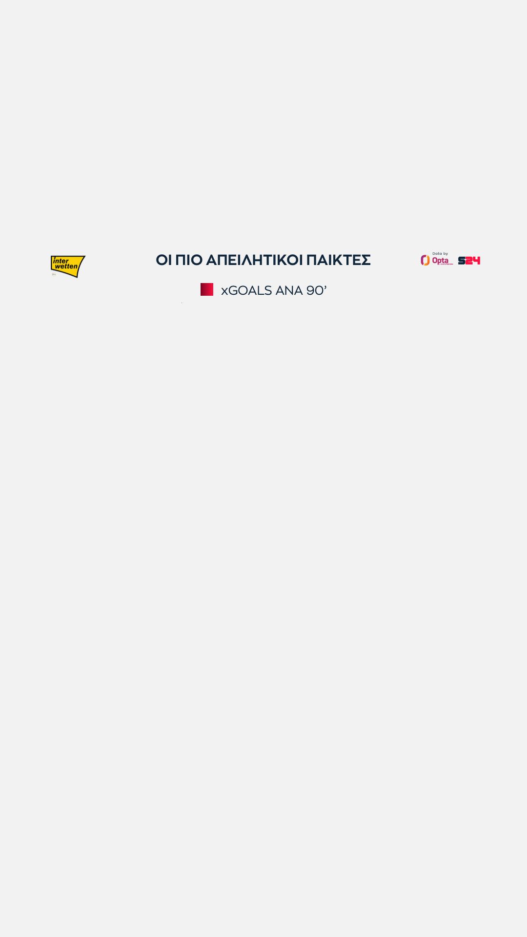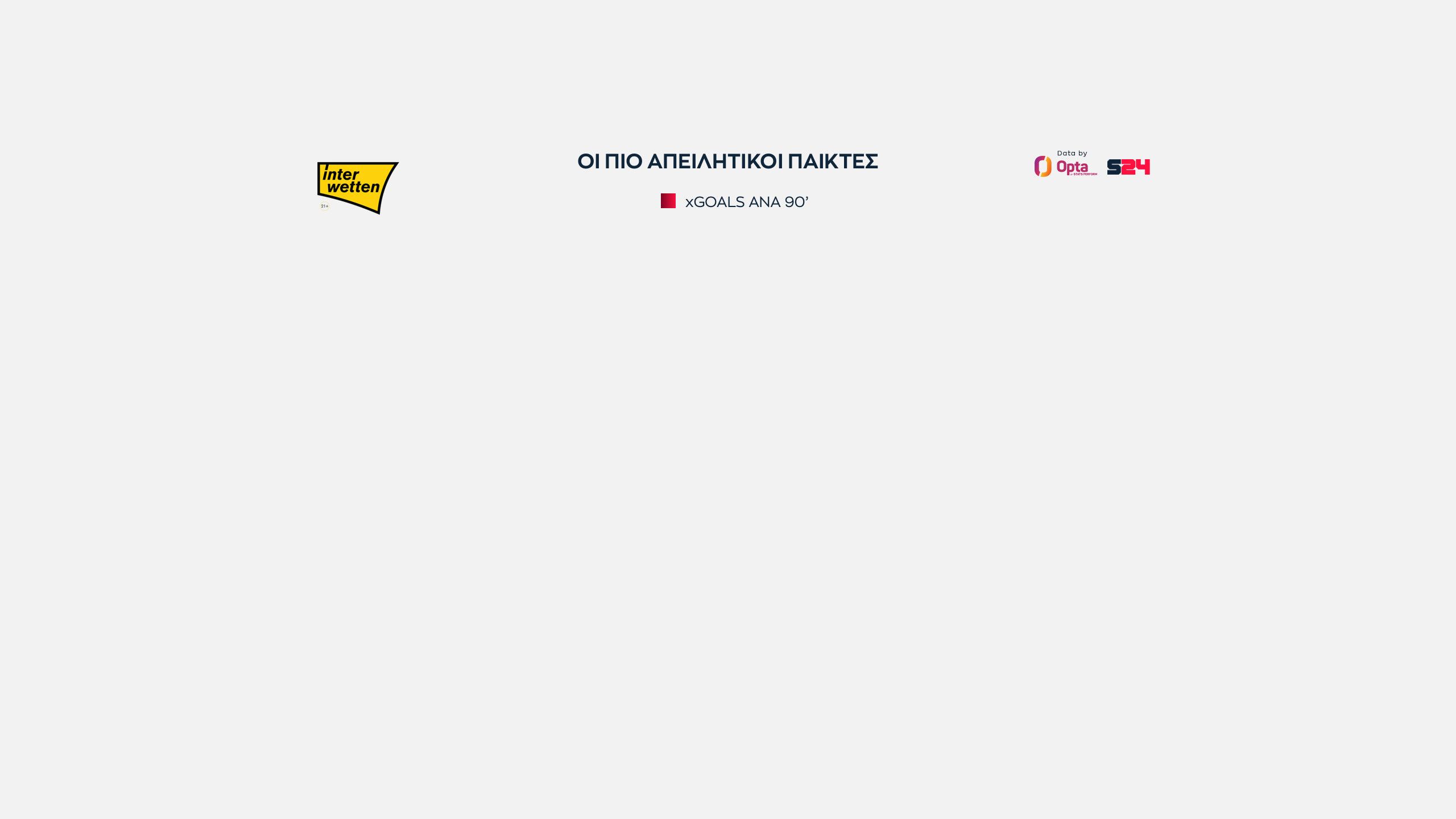 Αρχίζουμε με τους επιθετικούς και τη λίστα των πιο απειλητικών παικτών, εκείνων δηλαδή που είχαν περισσότερα xGoals ανά 90', χωρίς φυσικά να υπολογίζουμε τα πέναλτι.