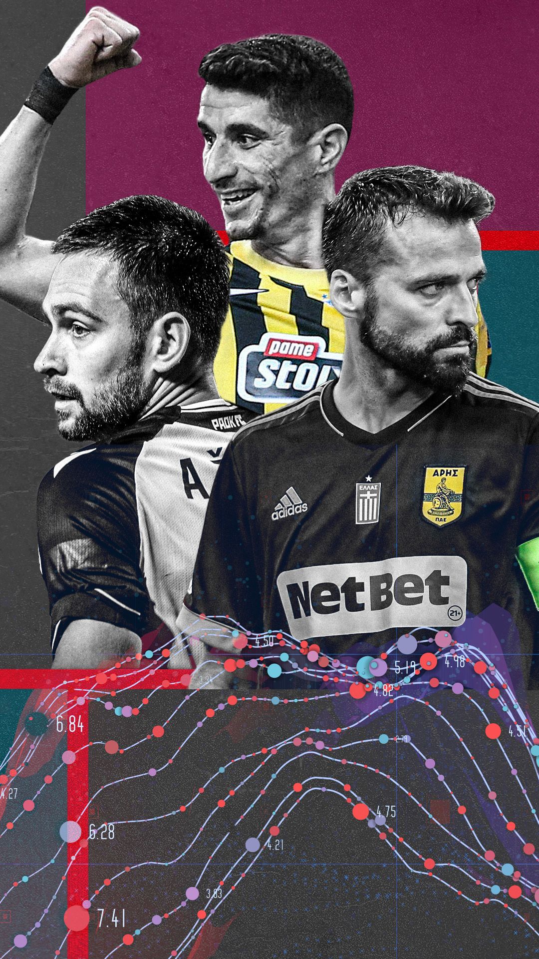 Ο Αρης συμπληρώνει την 4άδα, ενώ η ΑΕΚ κερδίζει κάποιες θέσεις σε σχέση με το που ήταν στο προηγούμενο γράφημα, αλλά βρίσκεται κι εδώ κάτω από τον μέσο όρο.