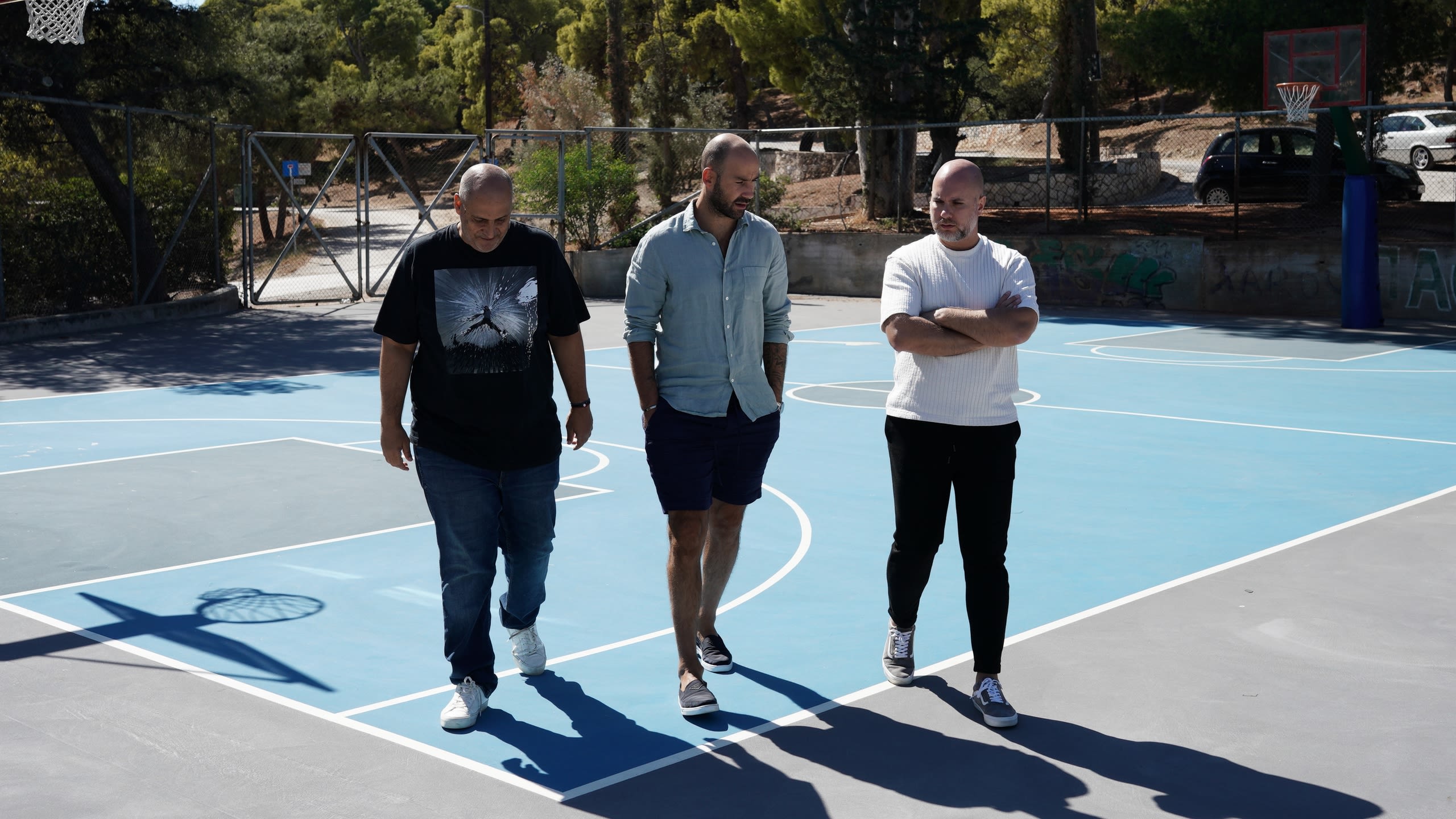 Πήραν το καφεδάκι τους από το "Καφέ Δόξα" του κυρ Γιάννη Σκουζή, περπάτησαν στα -ενδεχομένως ομορφότερα στην Ελλάδα- ανοιχτά γήπεδα μπάσκετ, έβαλαν τρεις καρέκλες κάτω από ένα πεύκο και συζήτησαν για EuroLeague και NBA, για τον Αντετοκούνμπο και τον Ομπράντοβιτς, για τους Ολυμπιακούς Αγώνες και το EuroBasket 2025, για την Ολυμπία, τα παιδιά και την Κέιτλιν Κλαρκ.